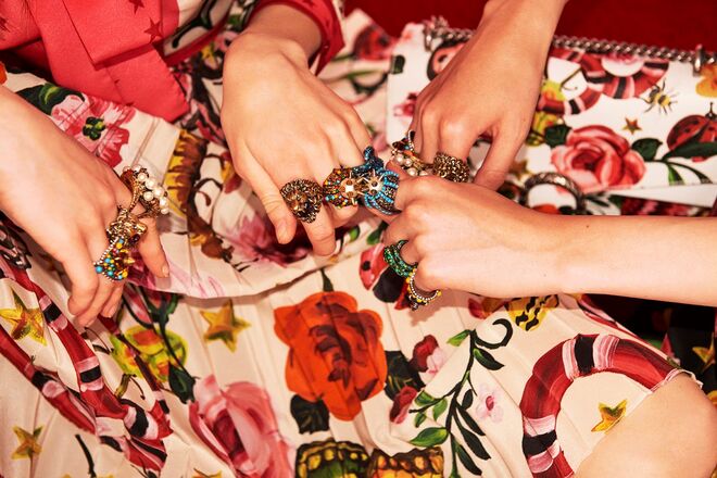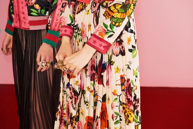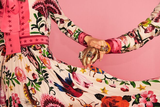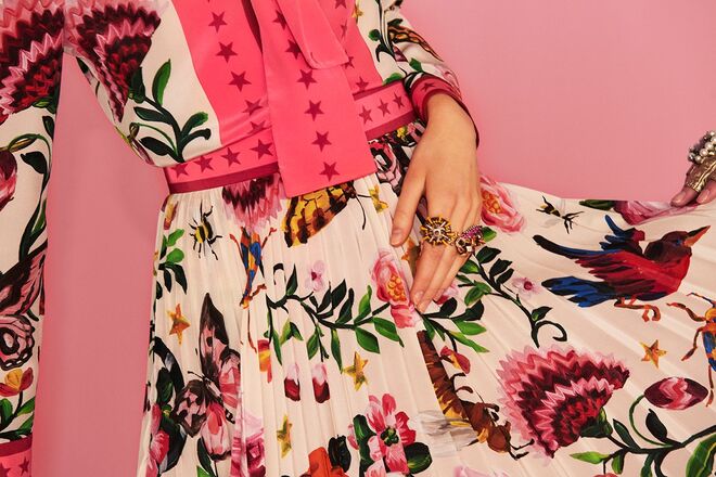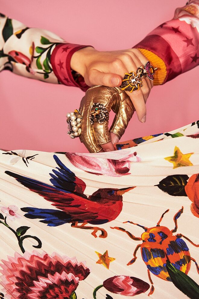 A Gucci escolheu dos mais emblemáticos padrões de sempre, as flores, para ser o grande protagonista da nova coleção-cápsula ready-to-wear, a Gucci Garden, e tornou-a num jardim (de encantar). Desde os bordados nas calças de ganga, às flores incorporadas nas joias, aos estampados nos bombers. Com as flores, Alessandro Michele apostou também num padrão com animais como escaravelhos, pássaros, joaninhas, cobras, borboletas... e toda a fauna associada aos jardins.