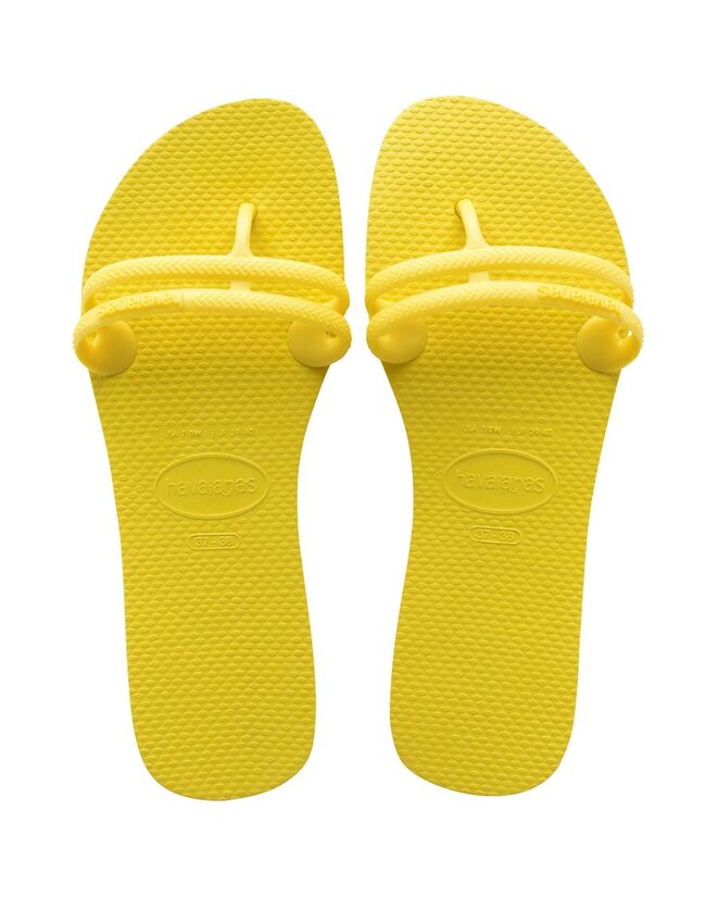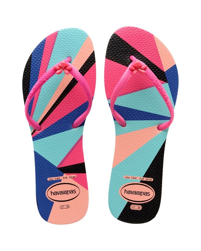 Quando calça as suas Havaianas Flat, experimenta um exclusivo modelo de Havaianas. Este modelo possui uma tira muito mais curta e uma sola de borracha mais fina, totalmente plana, criando uma silhueta fresca e jovem. Existem quatro cores lisas; Flat Gum, com tira dupla e cores mais vivas; Flat Sunset, que vai do escuro ao claro; e Flat Resort, com um divertido print geométrico com um amuleto de plástico na tira.