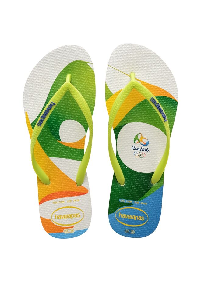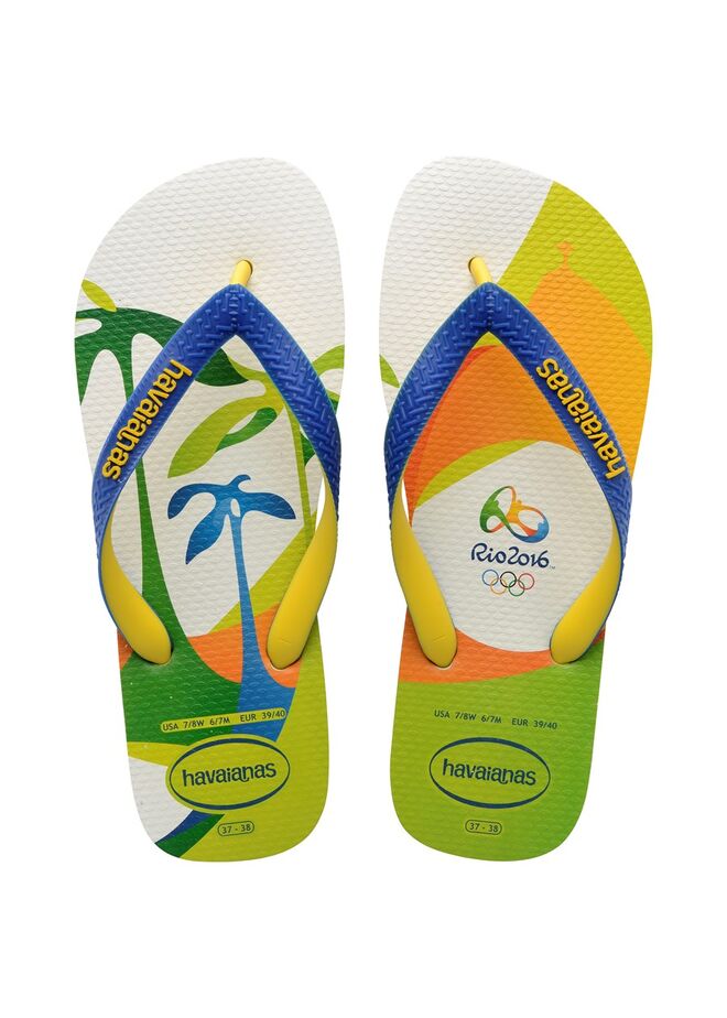 Como todos nós sabemos, os Jogos Olímpicos 2016 serão organizados no Rio de Janeiro, Brasil, e não há nada mais brasileiro do que os icónicos chinelos de borracha Havaianas. Para que todos estejam confortáveis na hora de apoiar e entrar em ação nos quatro cantos do mundo, o Comité Olímpico Rio 2016 apresenta a sua gama de produtos elaborada em parceria com a Havaianas. A coleção inclui 4 modelos, todos inspirados nas paisagens do Rio de Janeiro. Há dois prints que transmitem as cores e formas do emblema oficial do Rio 2016, um que retrata o Pão de Açúcar, e o outro, o Cristo Redentor.