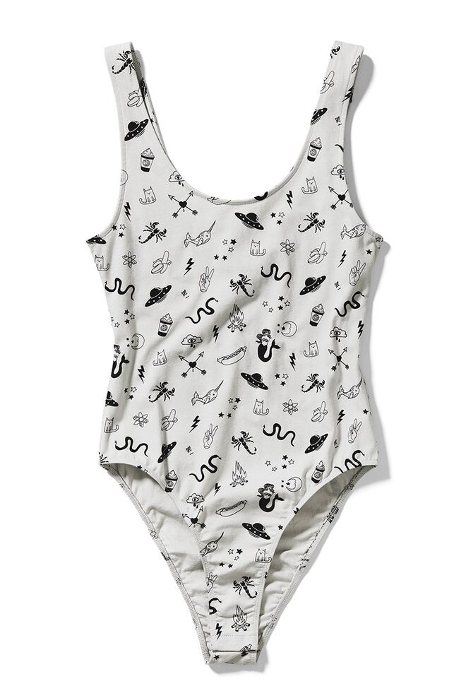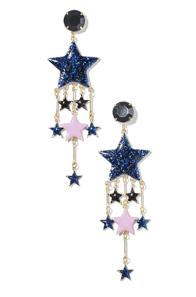 As peças em destaque são jeans desbotados com estrelas, fatos de banho com estampados ilustrados (com sereias, escorpiões, naves espaciais), óculos de sol com corações, calções em azul tie dye - são apenas alguns exemplos.