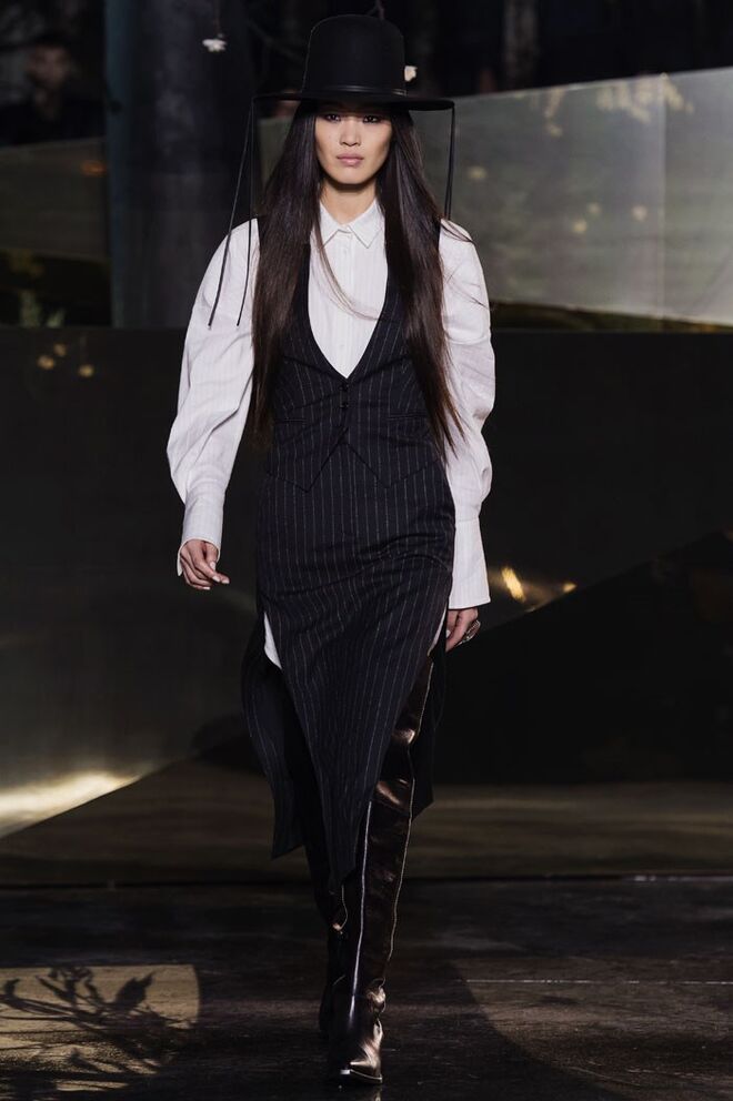 O foco centrou-se na coleção, que combina uma confeção poderosa com a tradição e o artesanato suecos. Existe um interesse renovado na silhueta feminina que acentua os ombros e a cintura, realçada pelo dramatismo e postura conferida pelos chapéus gaúcho e as botas de cowboy.