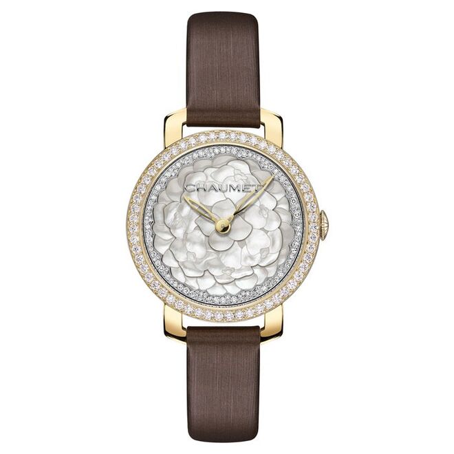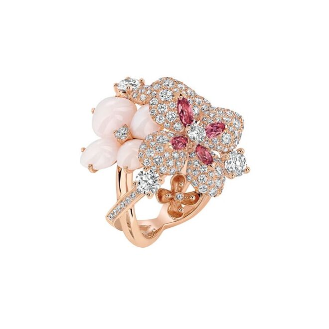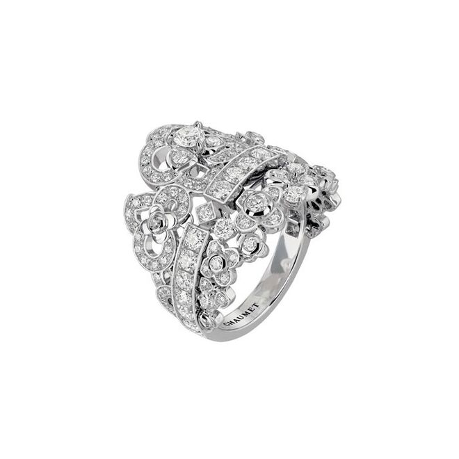 A Chaumet, fiel ao espírito naturalista da Marca, inspira-se em todas as subtilezas desta flor. Num espírito assumidamente gráfico, cria dez variações de pétala: estilizada, com aberturas, esculpida num movimento ao mesmo tempo alongado e de uma delicadeza extrema.