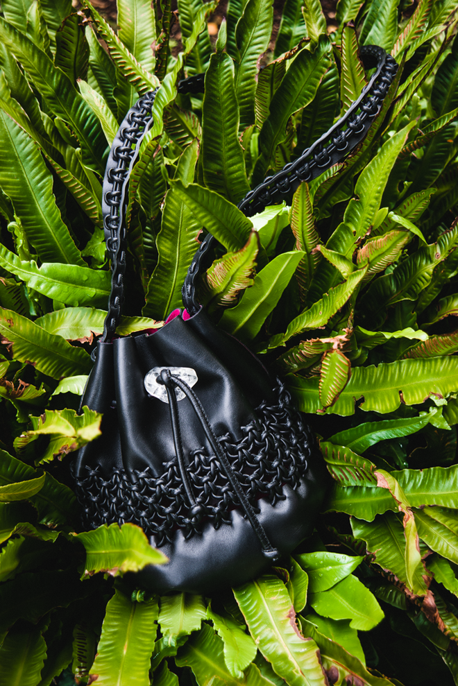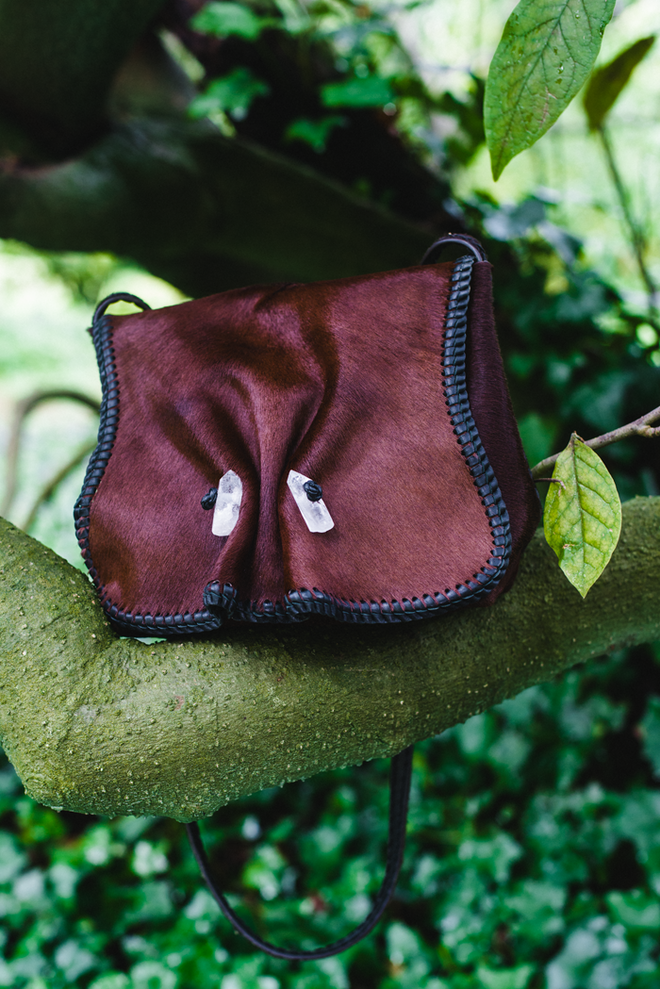 Existem desde sempre nas minhas peças. As coisas que eu fazia com os índios tinham sempre imensas pedras, seguradas por macramé. Mas para mim isso era demasiado hippie e comecei a usar apenas uma pedra em cada carteira. Sou eu que as escolho quando todos os anos vou ao Brasil. Eu adoro o quartzo rutilado, que agora é mais difícil de encontrar. Desde muito jovem que coleciono pedras, e eu própria as colocava nas carteiras. Hoje gostava de as ter de volta (risos) porque eram mesmo especiais. Hoje em dia usamos vários cristais quartzo, do rosa ao branco, à turmalina ou à ametista. Uma vez ao ano vou a feiras de cristais, a maior na Europa acontece na Suíça.