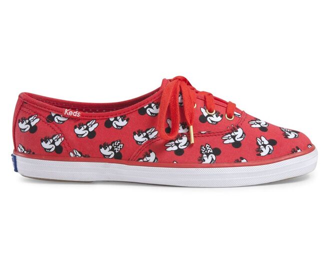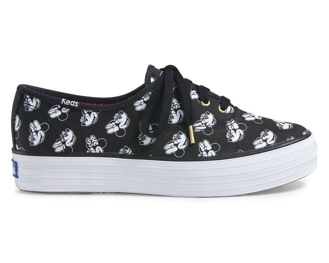 Presente em Portugal com três modelos, a partir desta semana, em exclusivo no El Corte Inglés, esta coleção conjuga a tradicional paleta de pretos, vermelhos e brancos, característicos da personagem, com o icónico azul da Keds. Designs da Minnie são apresentados na clássica silhueta Champion e no moderno modelo Triple Decker, com plataforma. Todas as palmilhas destes modelos apresentam ainda o logotipo da colaboração em dourado.