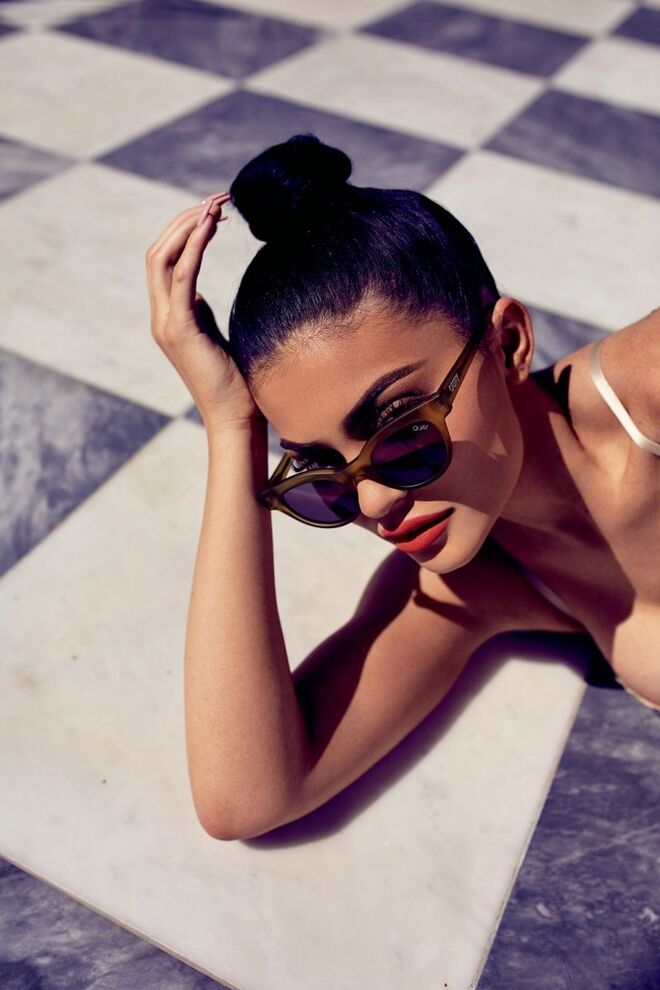 A irmã mais nova do clã Kardashian-Jenner desenhou uma linha de óculos de sol em parceria com a australiana Quay.