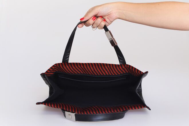 Para além disso, a vantagem é que tanto a clutch como a mala se podem usar de duas formas: com alça colocada, podemos usá-las à tiracolo e conseguir um look mais descontraído. Para a designer Eliana Tomaz é importante que cada peça seja a resposta versátil a cada momento do dia. Se mais elegante, exibir a mala pela mão, se mais atarefada, nada melhor que a ter ao ombro.