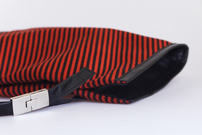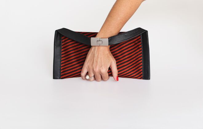 Com um cunho português bem vincado, a TOMAZ não é uma marca que se "acomode" - tal como a sua criadora. Foi em busca de um material diferente e original que Eliana Tomaz descobriu o tecido antigo, dos anos 70, de que a Lana, a nova coleção da marca, é feita. Depois dos sucessos da Unomono, da Francis Petit e da Cheers, Lana desdobra-se em dois modelos, uma clutch e uma mala, ambas com riscas (um dos pormenores que caracterizam a marca) e em materiais ultra resistentes, aveludados e sintéticos. Todas as peças são feitas à mão, desde o corte à costura, bem como a estampagem da marca e do número de série, outra assinatura da marca.