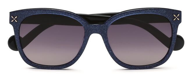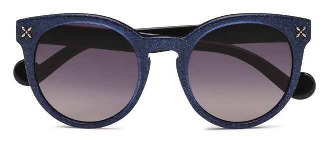 A versão arredondada apresenta a armação em acetato nas tonalidades azul ou preto denim, para recriar o efeito icónico das texturas nas hastes e na frente com ponte "buraco de fechadura", enriquecidas com brilhos cintilantes que exaltam a sensação de frescura e leveza do glamour do verão.