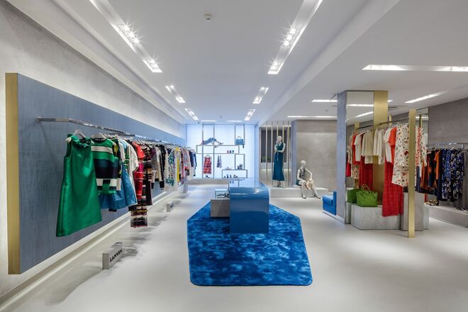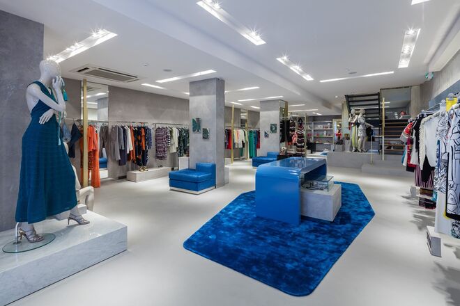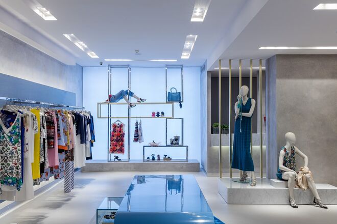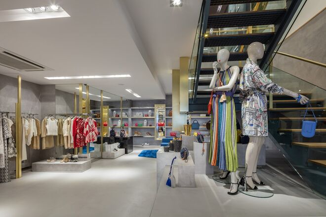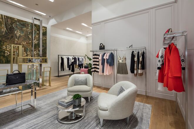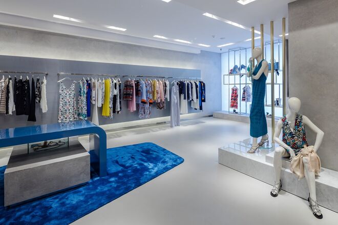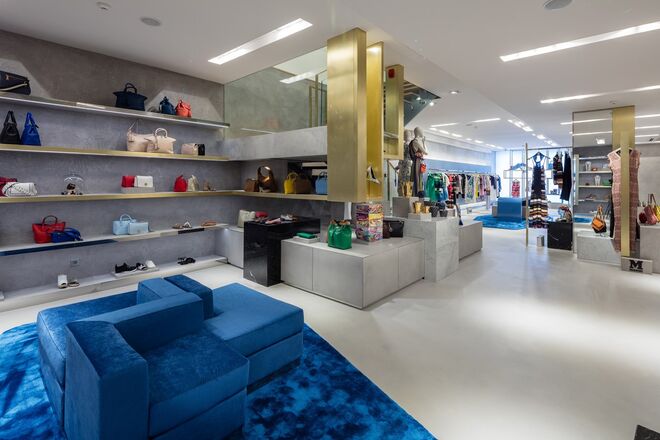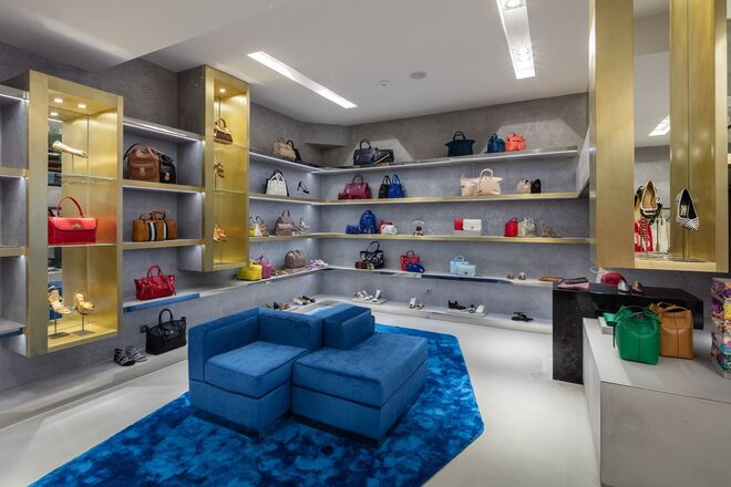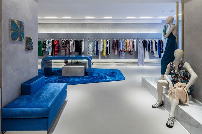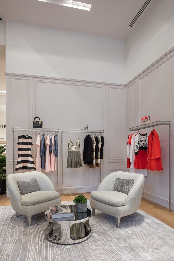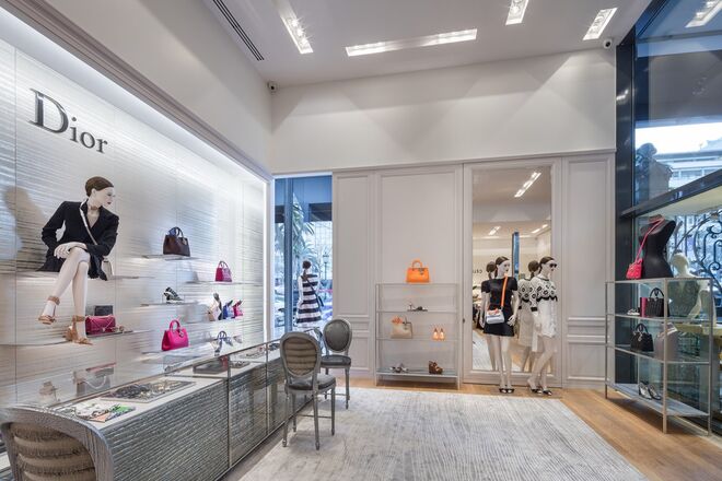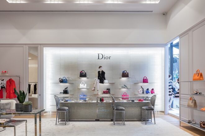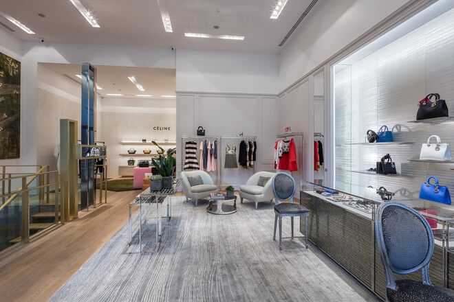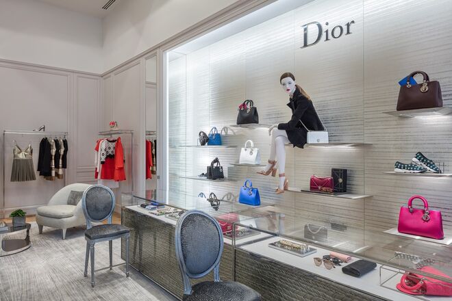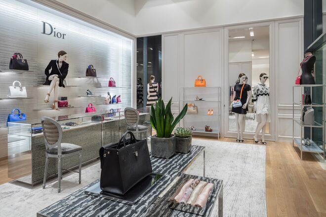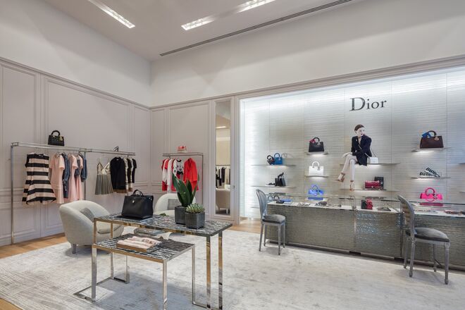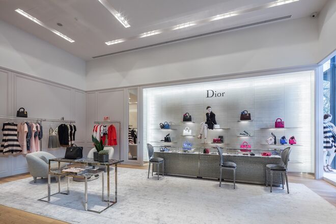 Ao entrar na loja encontra-se o espaço Dior, criado com o novo conceito premium de Peter Marino, em tons de cinza e prata. Os seus móveis e estruturas viajaram diretamente de Paris e assentam num tapete de timbres cinzentos de seda especialmente elaborados por artesões do Tibete, que se coordena com as paredes revestidas em papel prata. Um requinte parisiense que realça as linhas Dior.