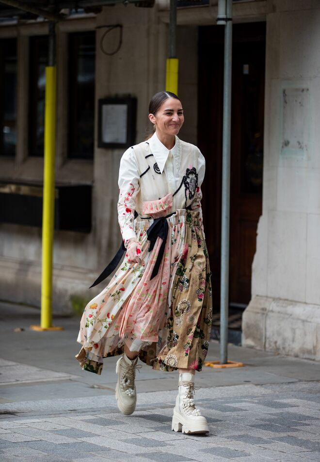 Vestidos compridos, mangas balão, sapatos de palaforma e cores vibrantes. Estas são apenas algumas das tendências de street style da semana da moda londrina, que queremos adotar já neste outono.