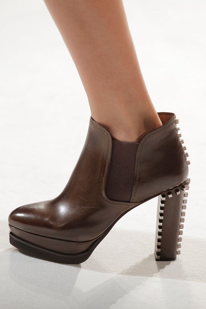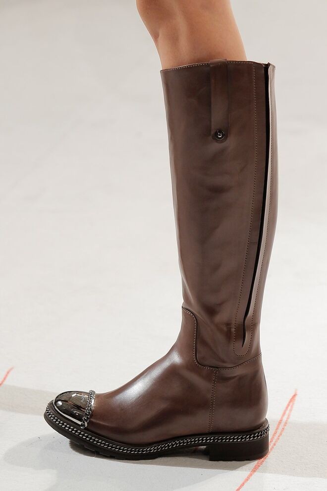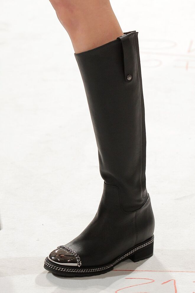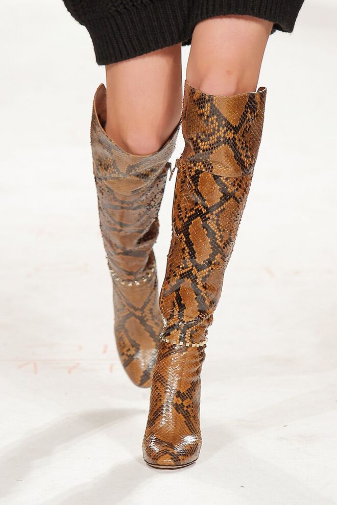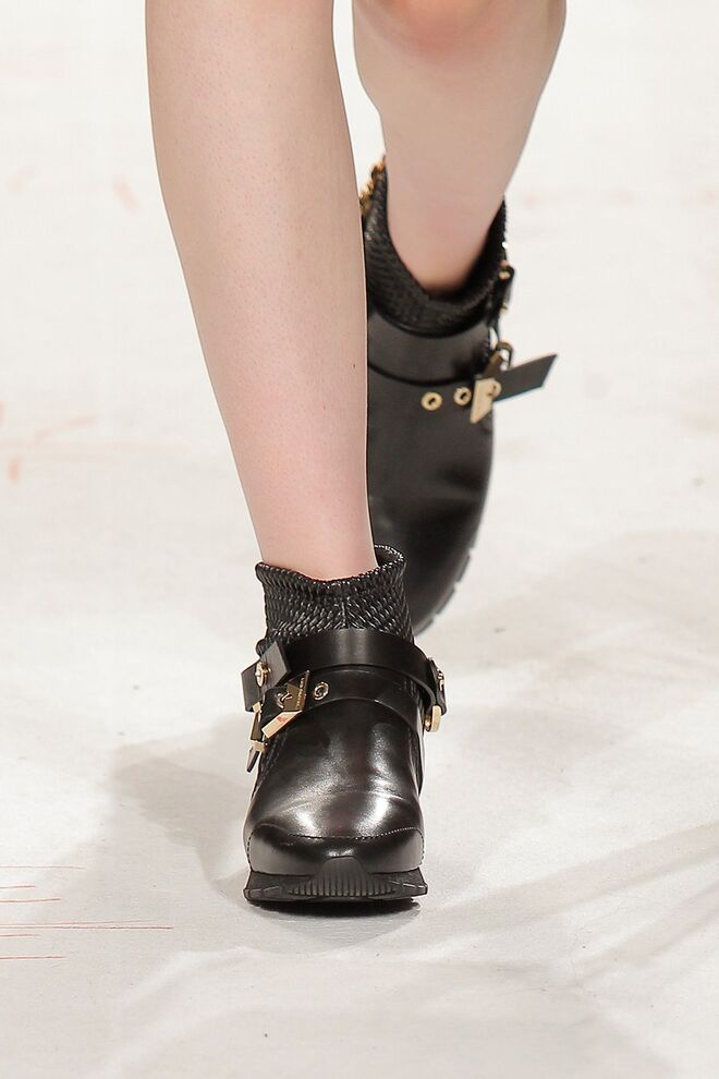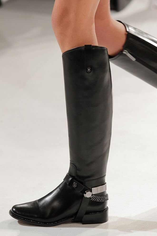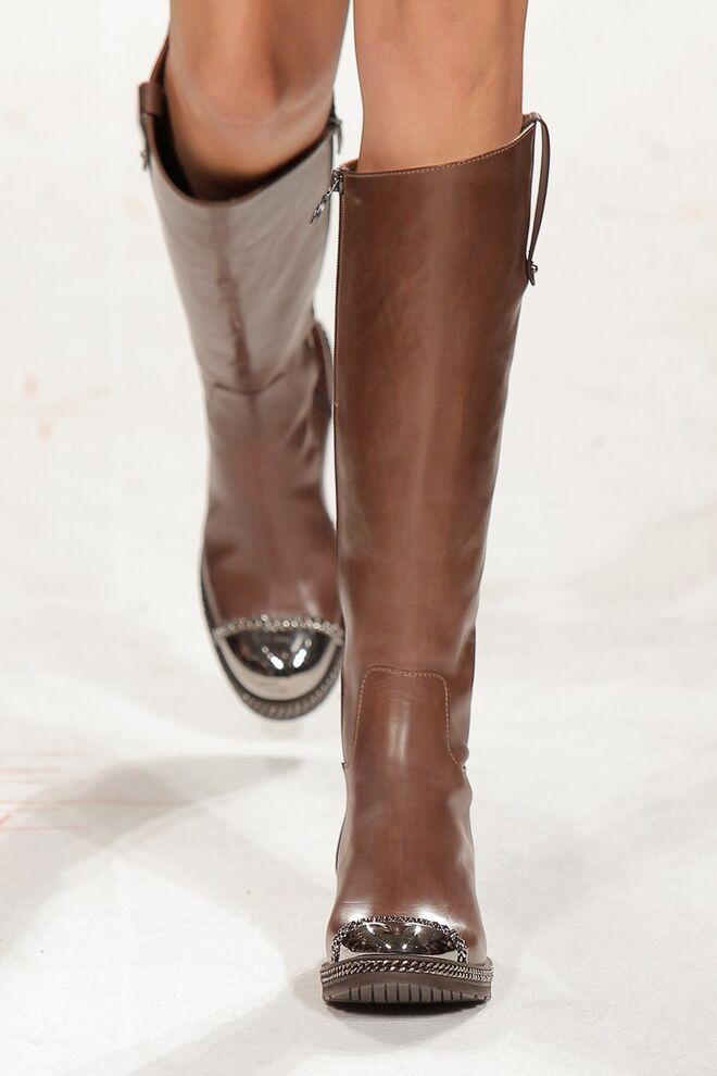 As botas de montar regressam, com solas e canos que incorporam pedras e metais, complementados com canelados nas laterais. Correntes, tachas e outros acessórios metálicos surgem replicados dos anos 70. O efeito modelador da Lycra ajuda a trazer feminilidade em botins e botas acima do joelho.