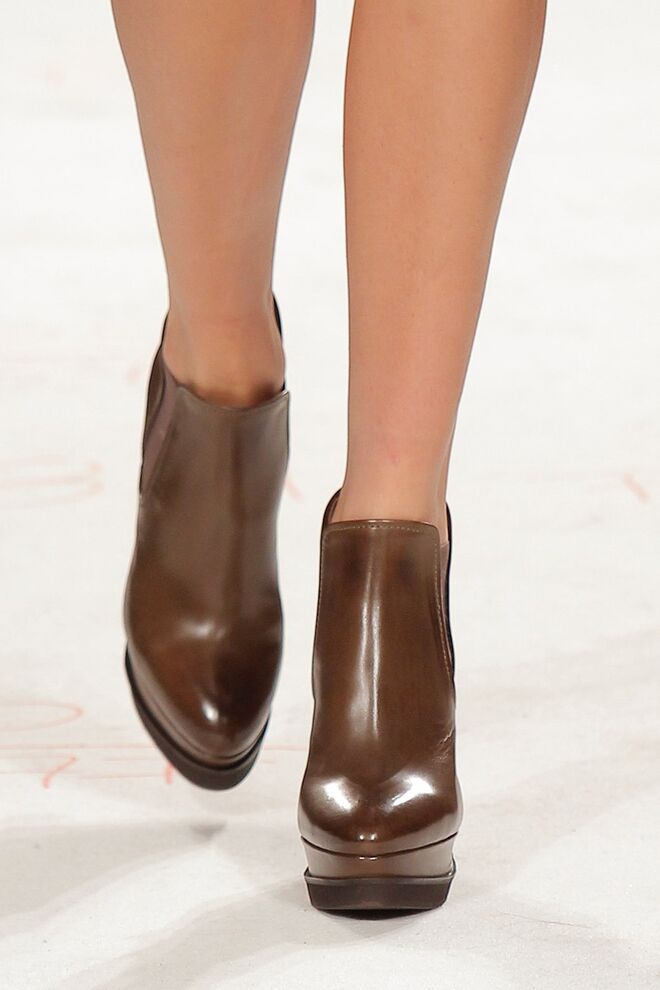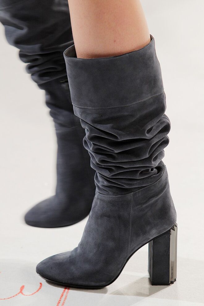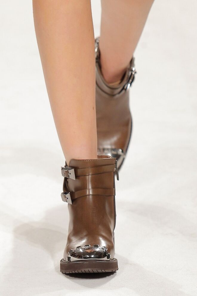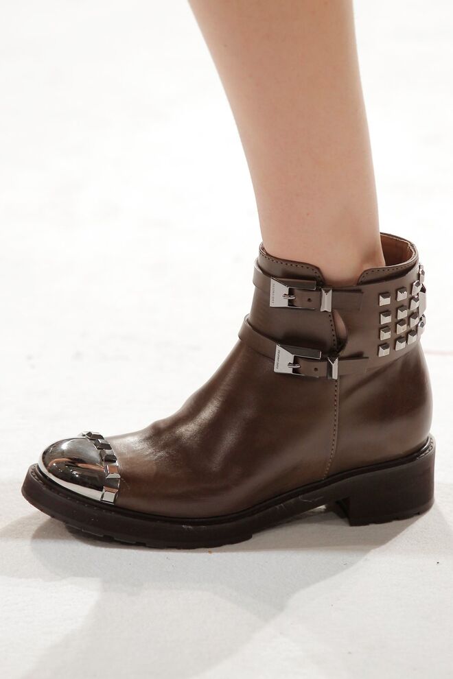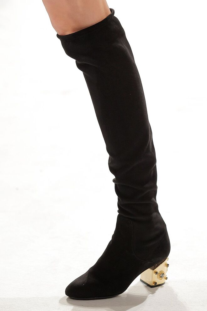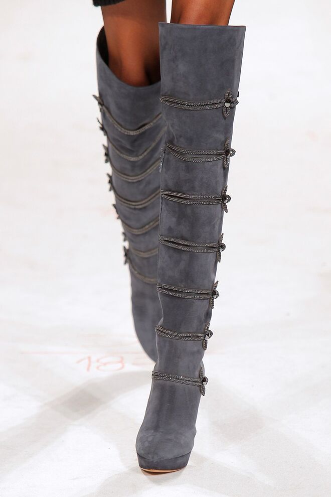 As botas de montar regressam, com solas e canos que incorporam pedras e metais, complementados com canelados nas laterais. Correntes, tachas e outros acessórios metálicos surgem replicados dos anos 70. O efeito modelador da Lycra ajuda a trazer feminilidade em botins e botas acima do joelho.