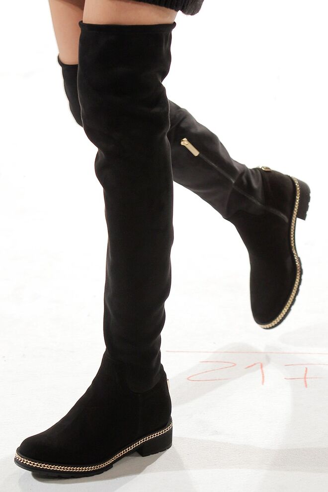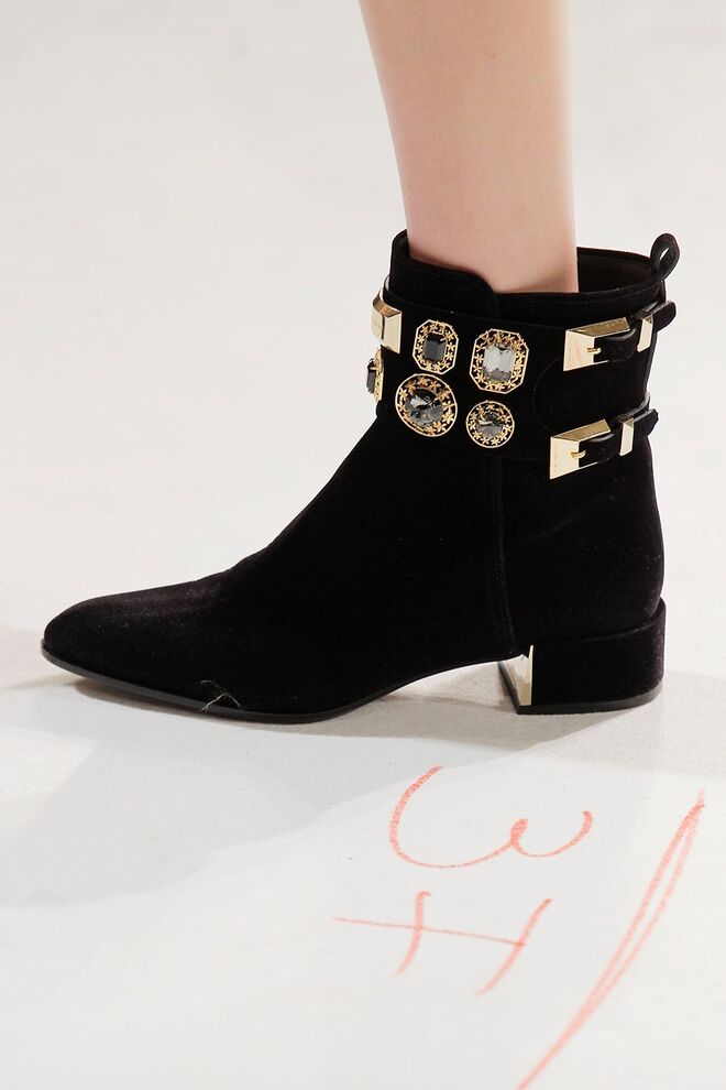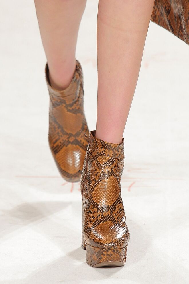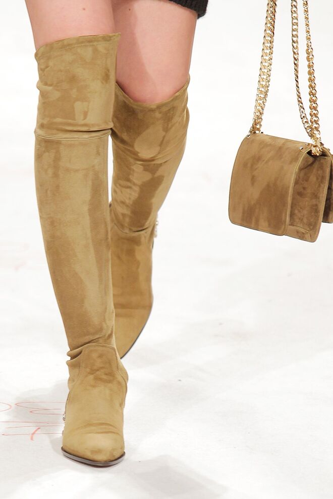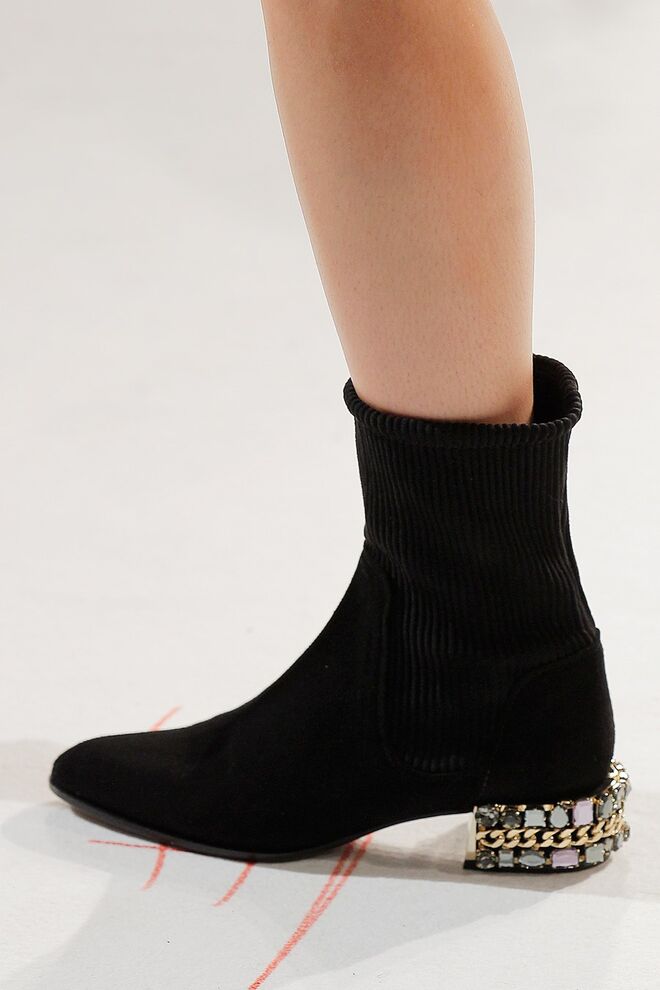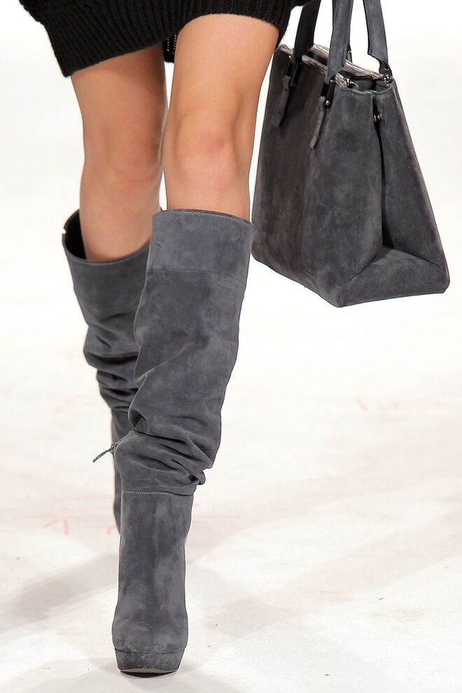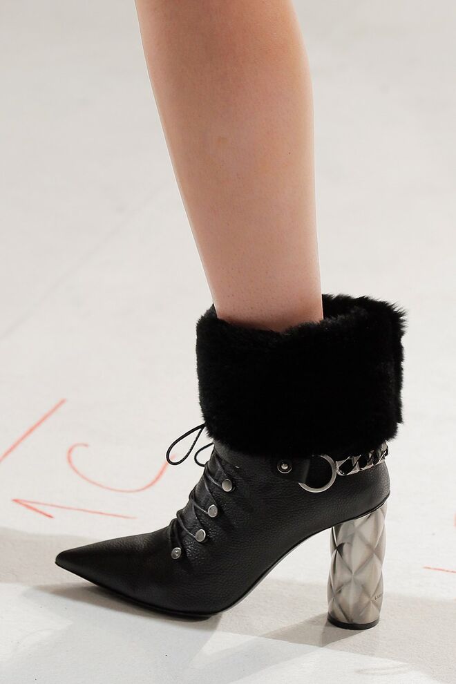 As botas de montar regressam, com solas e canos que incorporam pedras e metais, complementados com canelados nas laterais. Correntes, tachas e outros acessórios metálicos surgem replicados dos anos 70. O efeito modelador da Lycra ajuda a trazer feminilidade em botins e botas acima do joelho.
