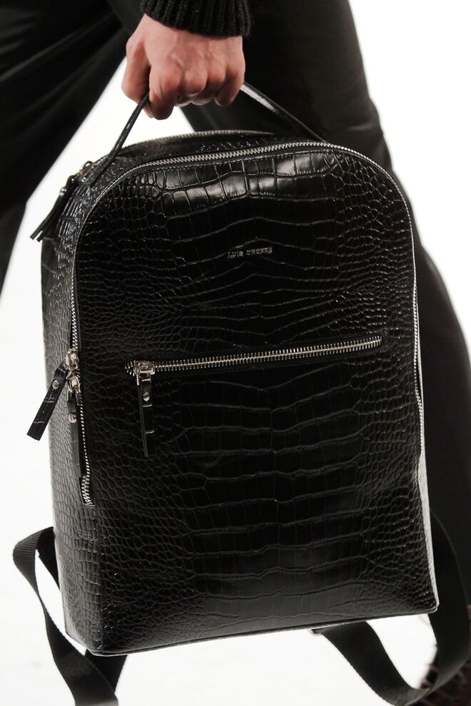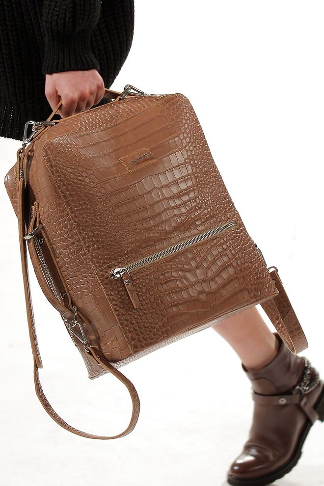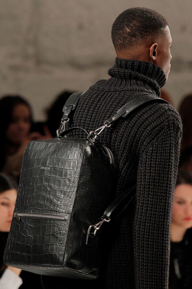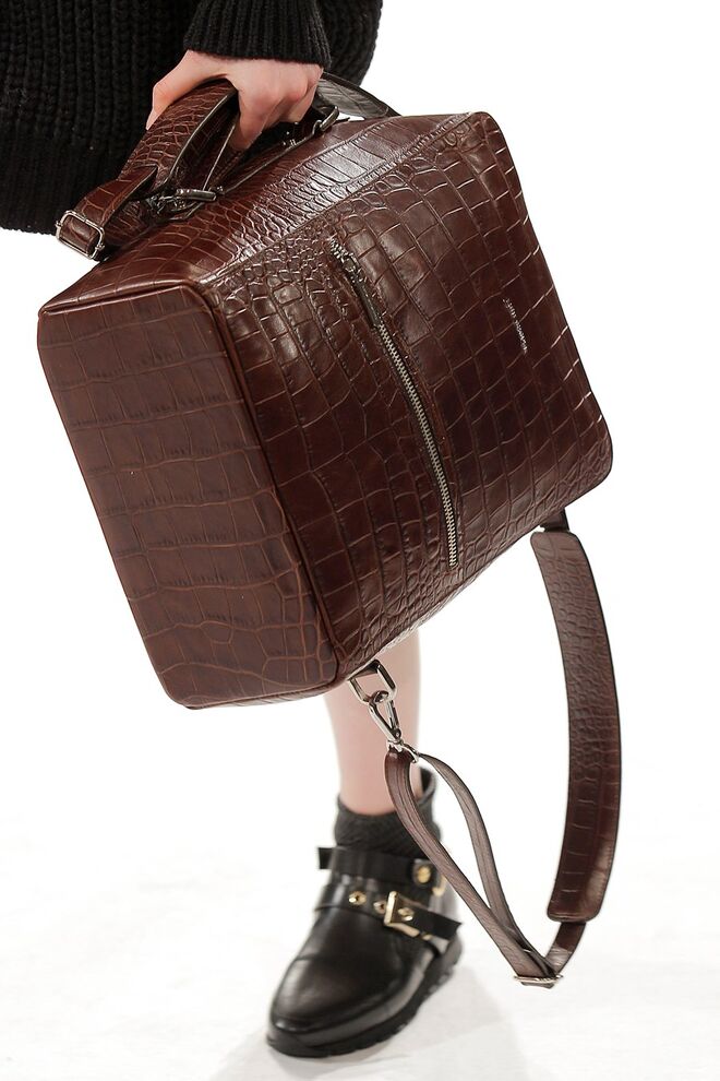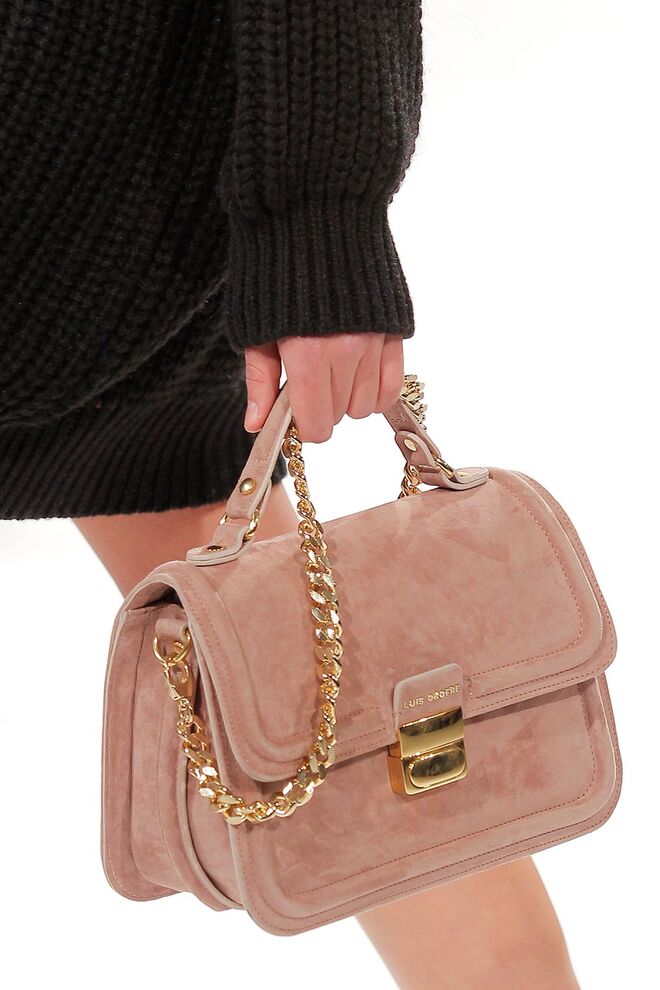 Os materiais passam muito pela pele de camurça e o croco, mas é a novidade de pele genuína com acabamento flock, semelhante a veludo, que está em destaque.