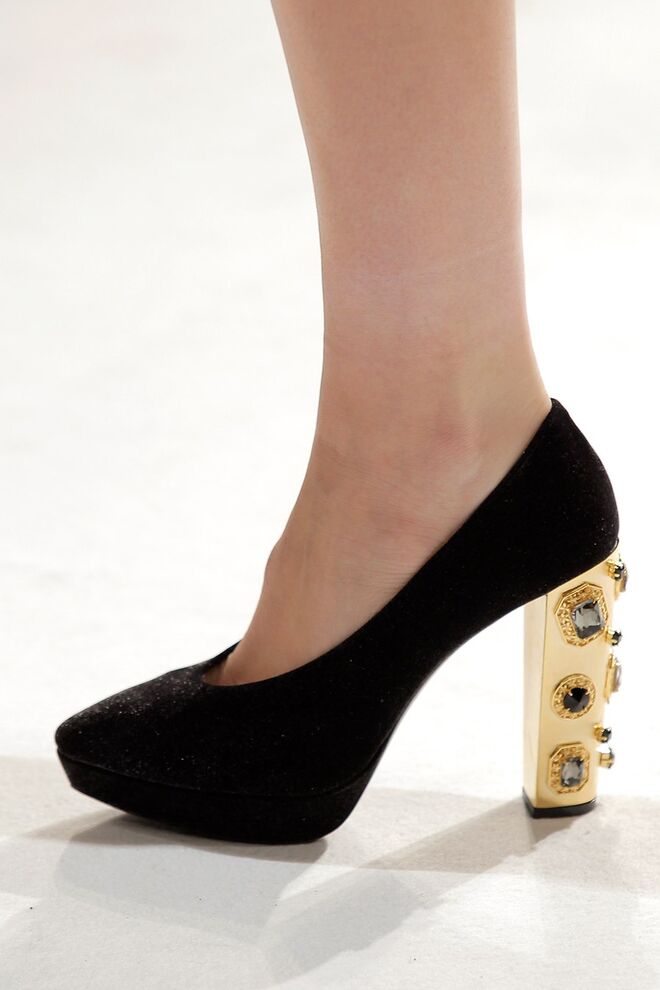 Os saltos altos foram trabalhados com a consistência de uma coluna em pedra, e são eles os grandes protagonistas desta colecção. Em metal ou pedras Swarovski Black Diamond, engrossam e são o suporte de modelos que podem assumir formatos mais bicudos ou arredondados.