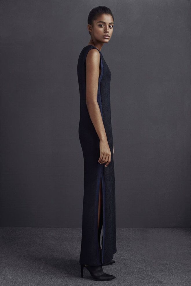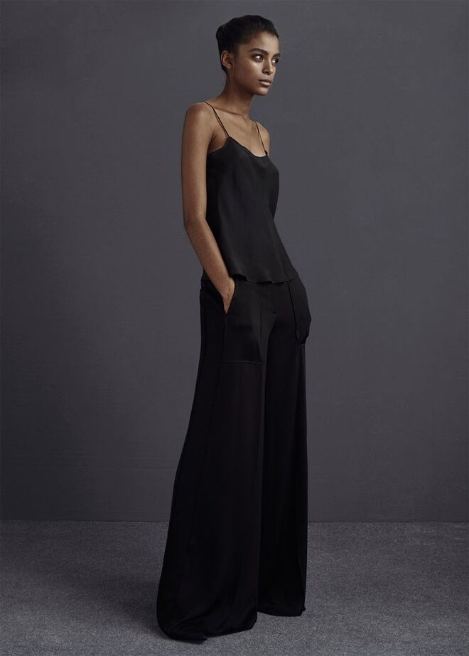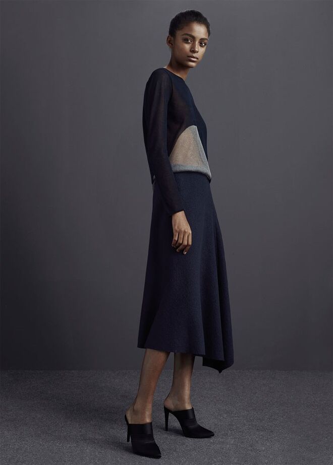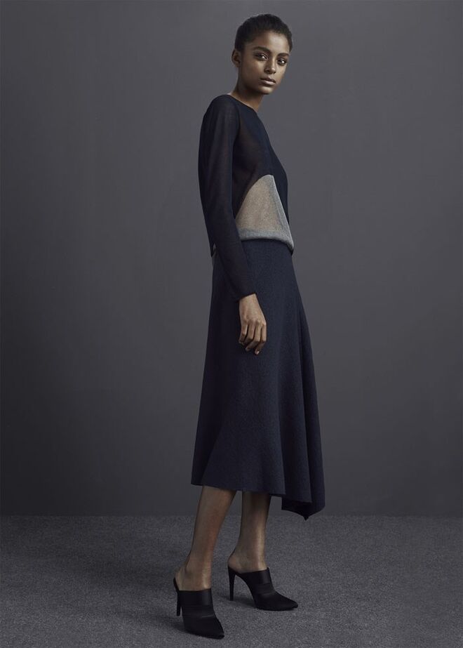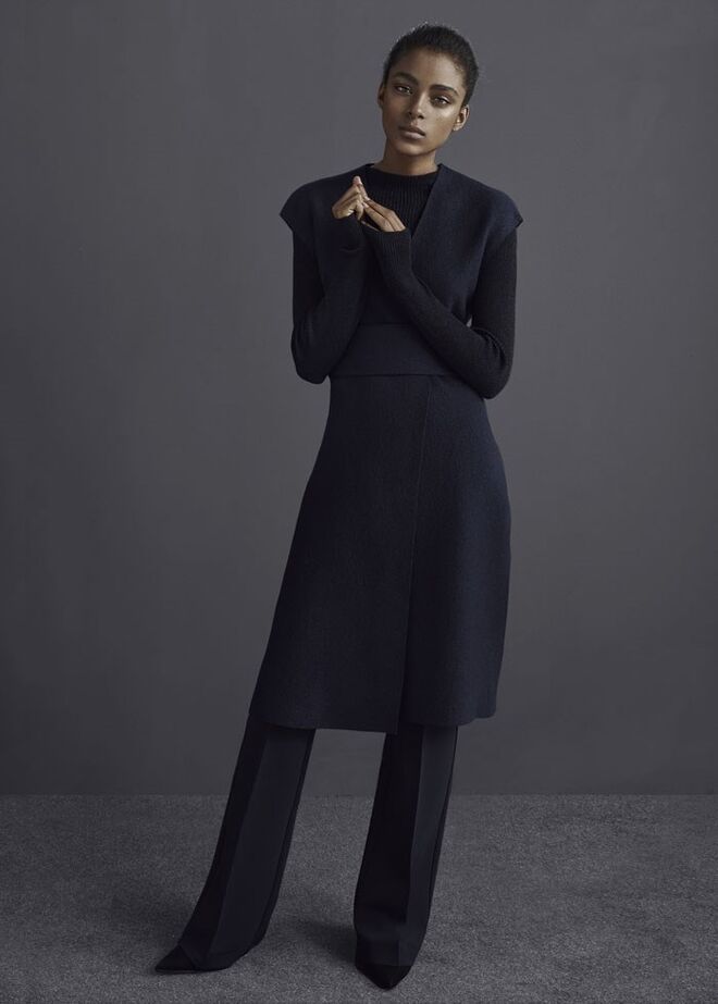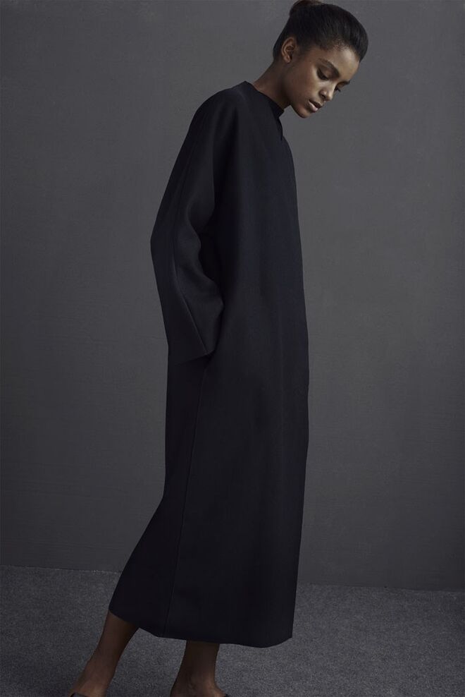 Minimalista, de cortes arrojados e de linhas sóbrias que alternam entre o masculino e o feminino.