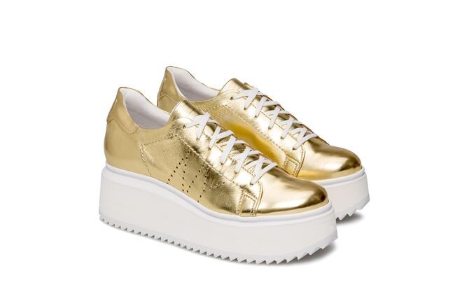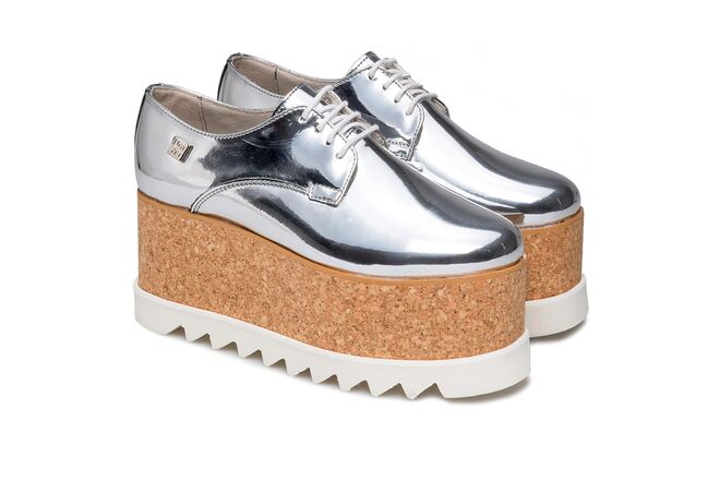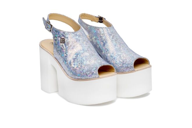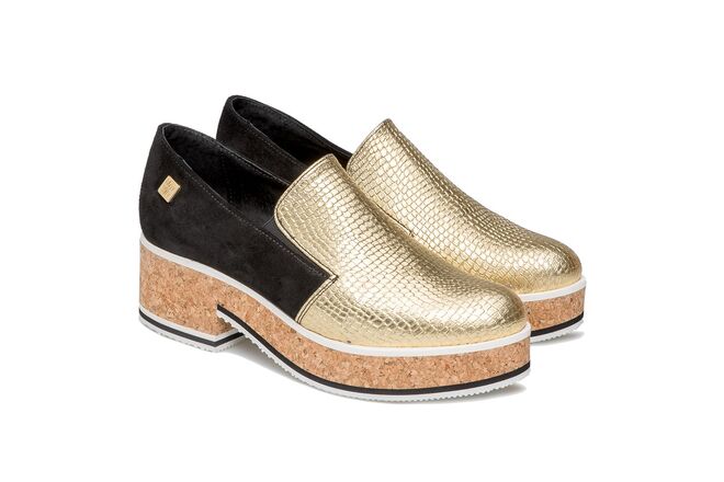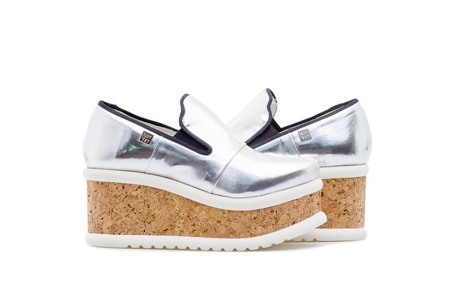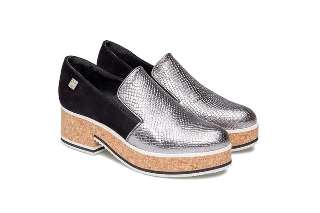 A marca portuguesa de calçado NOT YET apresenta diversos modelos metalizados- uma das grandes tendências da estação. Os modelos podem ser encontrados em prateado, dourado e ouro rosa e adicionam glamour e personalidade a qualquer coordenado. A mistura de materiais, como a pele metalizada e a cortiça, fazem o contrabalanço perfeito entre tradição e modernidade.