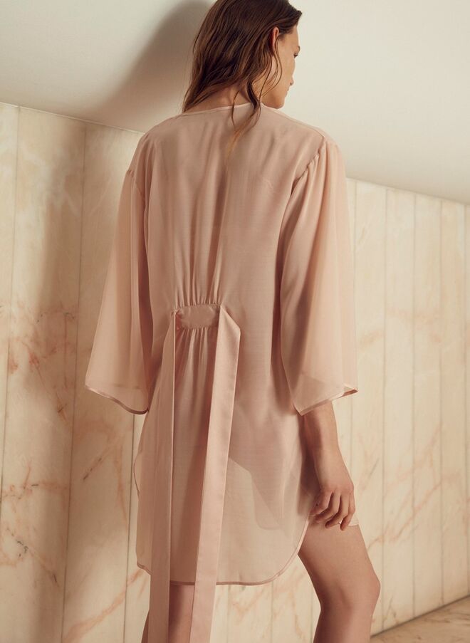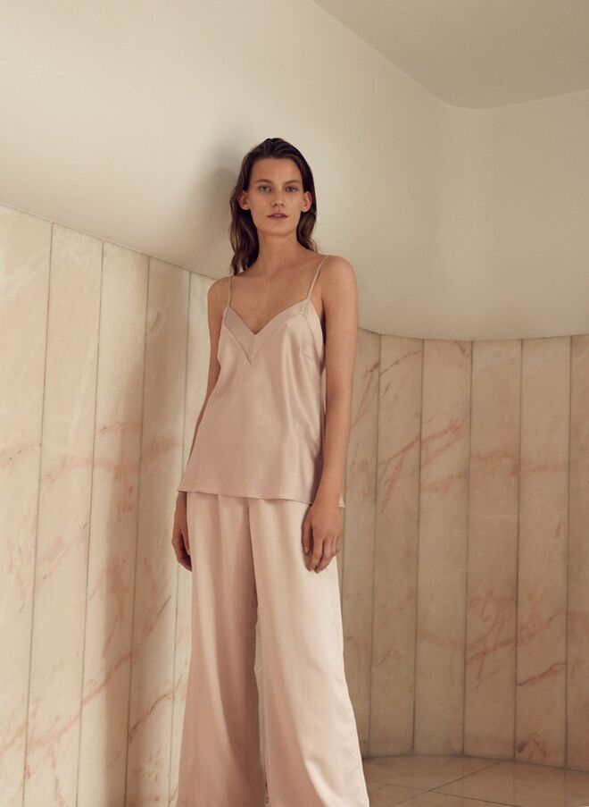 Para esta nova temporada, a Oysho dedica-se mais aos detalhes, apostando em peças com materiais distintos: tecidos bordados em tule e renda, veludo, cetim ou gazes translúcidas, que criam efeitos óticos. Através de uma paleta de tons polvilhados e neutros, sobressaem o rosa quartz, o azul, o framboesa e o clássico preto em versão total ou acompanhado de estampado floral e de inspiração oriental.