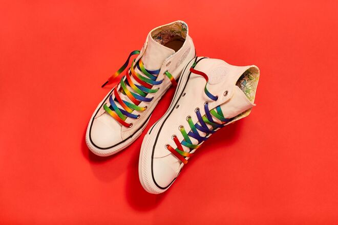 A conhecida marca de ténis lança a mensagem: ‘Seja qual for o teu sexo ou identidade, a Converse acredita que todo o mundo é livre de ser quem é’. Os lucros desta linha reverterão para o projeto It Gets Better Project e para a fundação Happy Hippie Foundation.