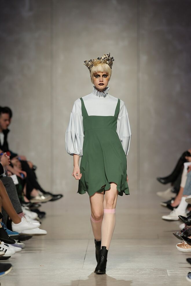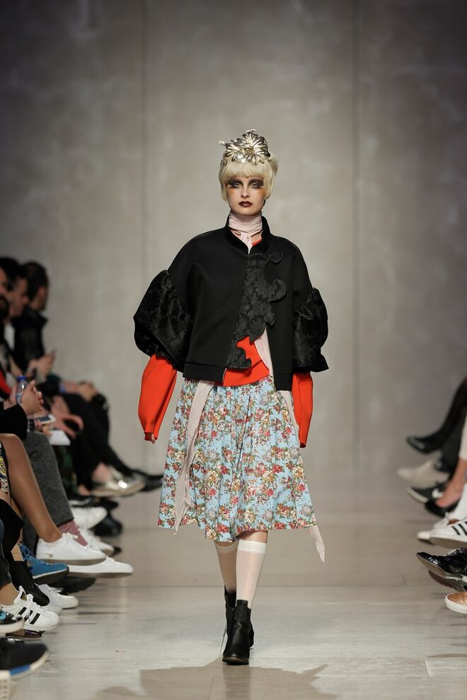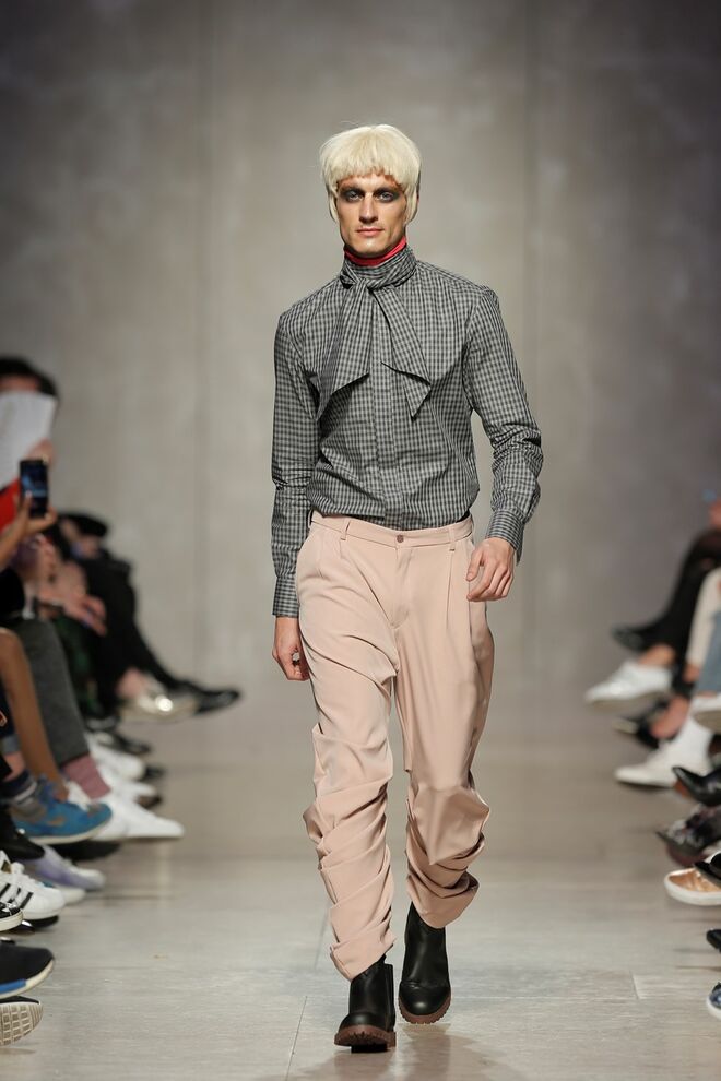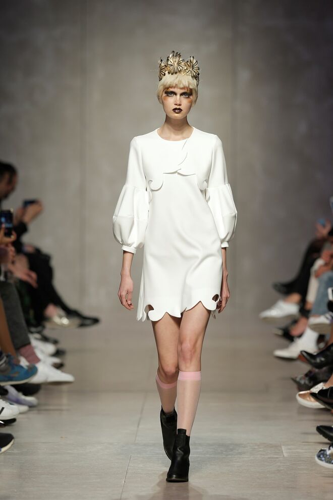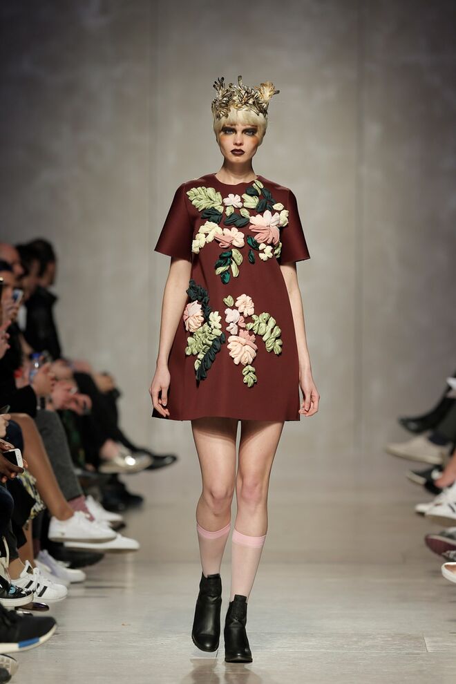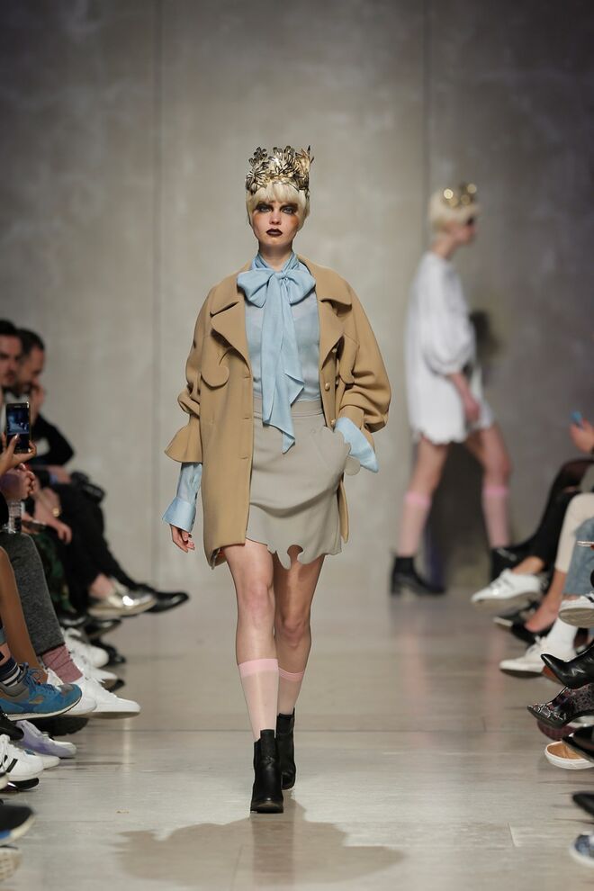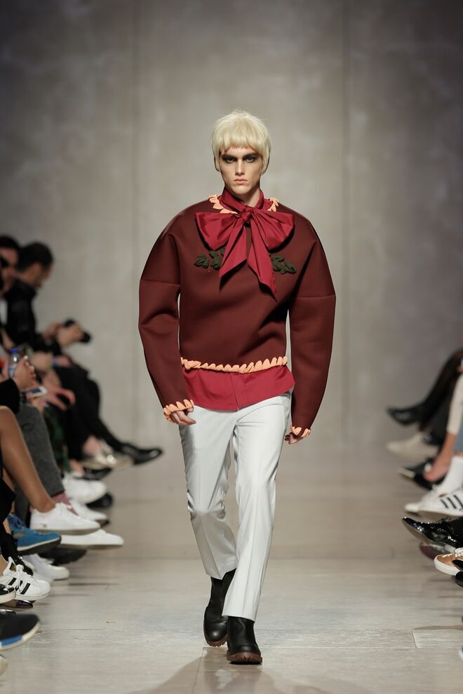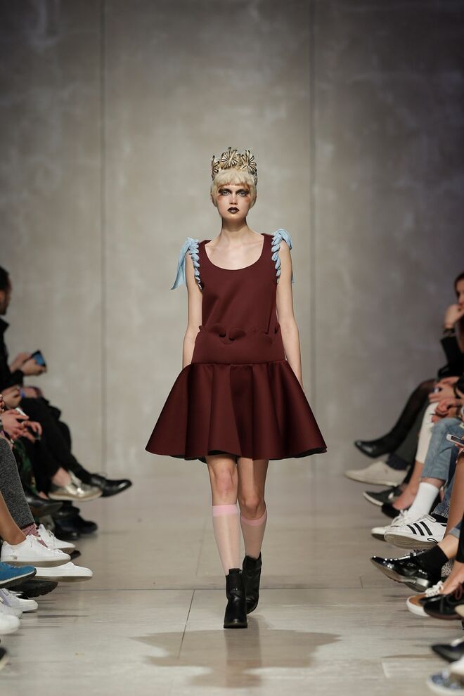 As bainhas recortadas com formas de elementos decorativos barrocos retirados dos interiores de palácios, mobiliário e outras peças decorativas. Sobreposições de painéis com as mesmas formas a criar uma ideia de relevo. Aplicação dos mesmos recortes em palas de bolsos, badanas, encaixes, cós, etc. Detalhes decorativos em pontos manuais macro feitos com fitas de tecidos e furos nas peças e motivos bordados com a mesma técnica. Folhos e franzidos a criar volumes em várias partes das peças, laços faustosos, golas de renda e outros detalhes inspirados no guarda roupa da realeza mas trazidos para a atualidade.