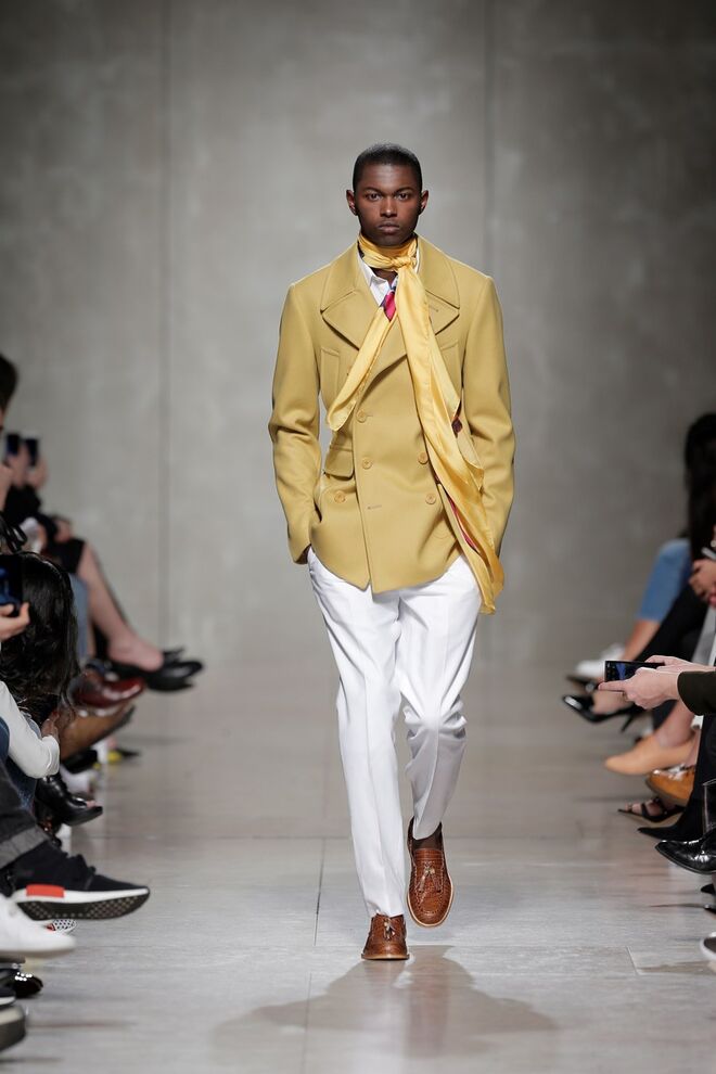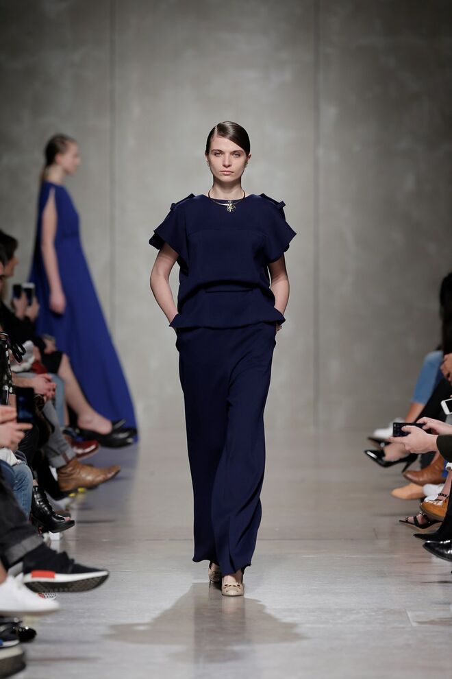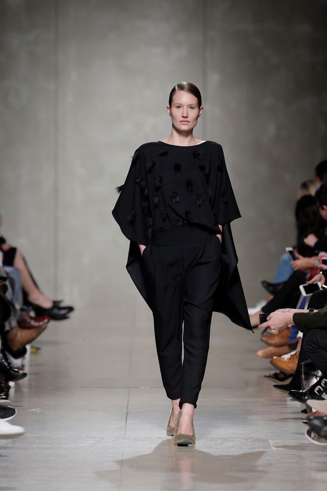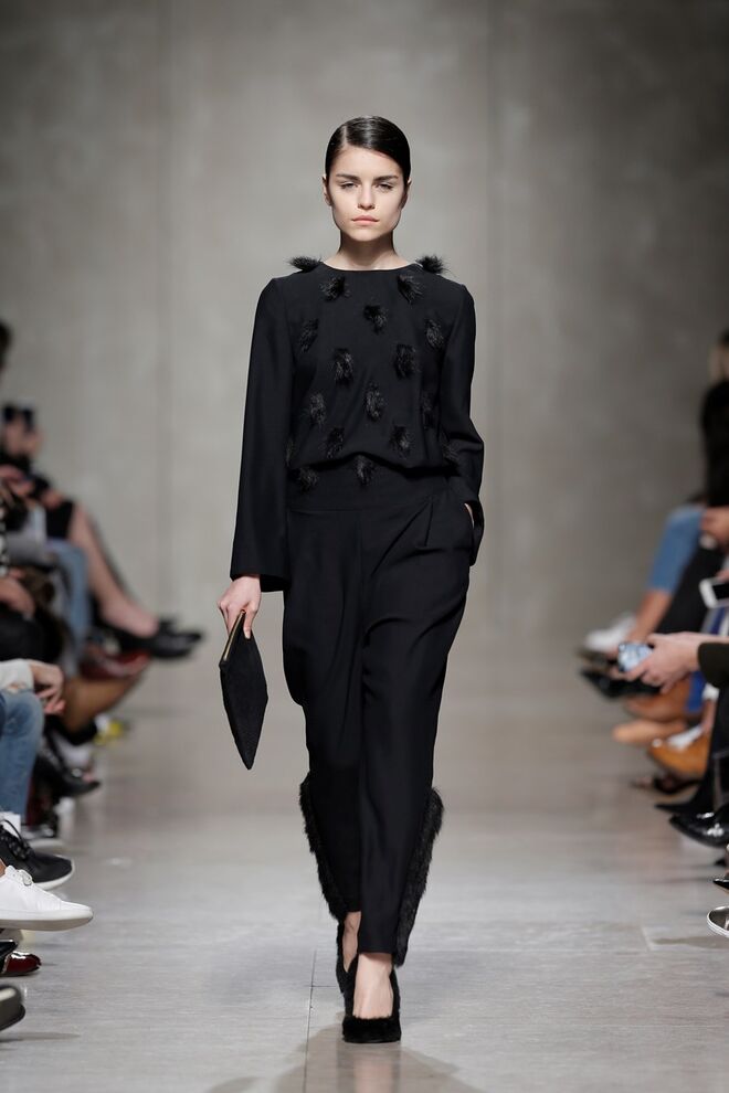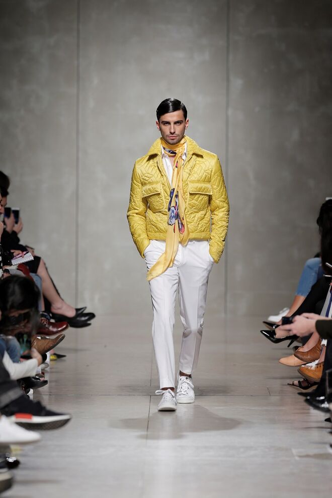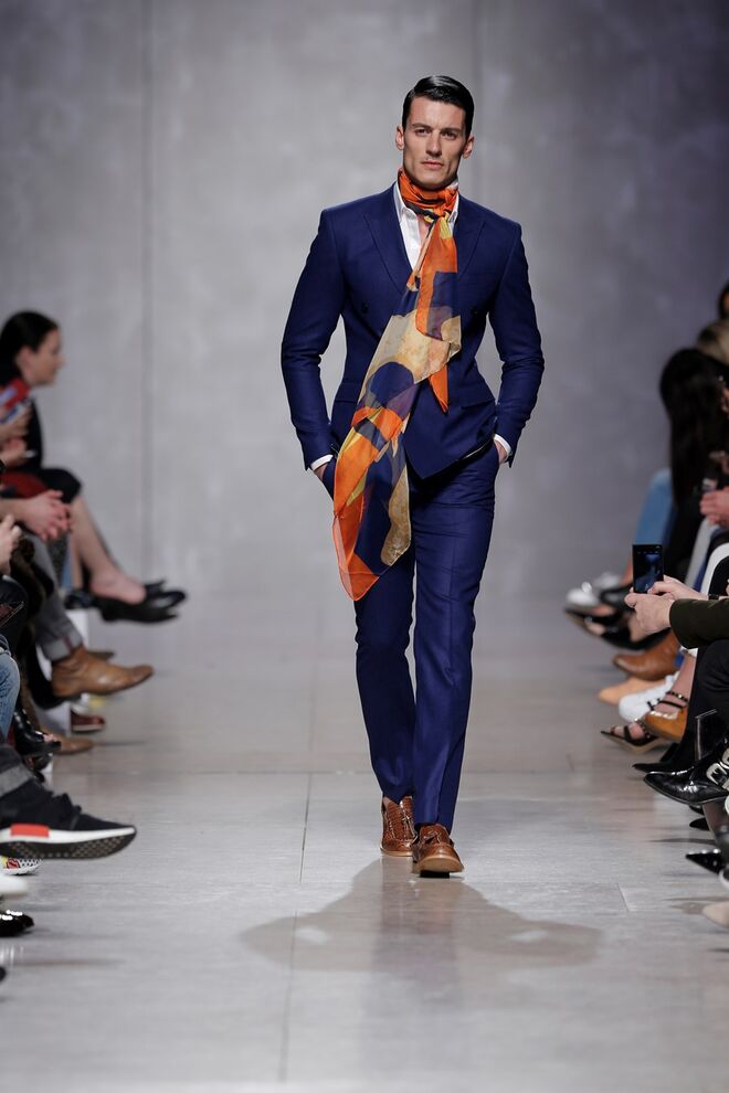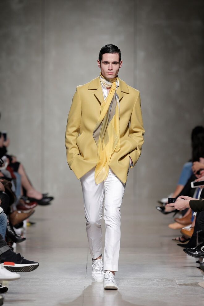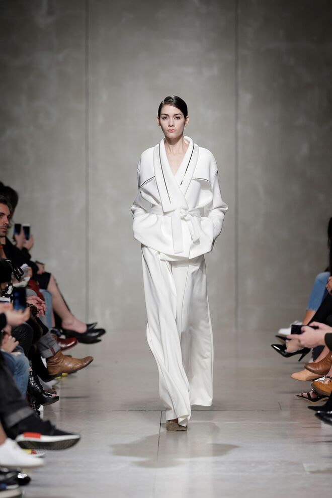 Quanto às silhuetas, para mulher, linhas estruturadas e informais, linhas volumosas que não escondem a feminilidade, alturas longas e extra longas, fit largo e purista. Para homem, fatos estruturados e calças de corte irrepreensível.