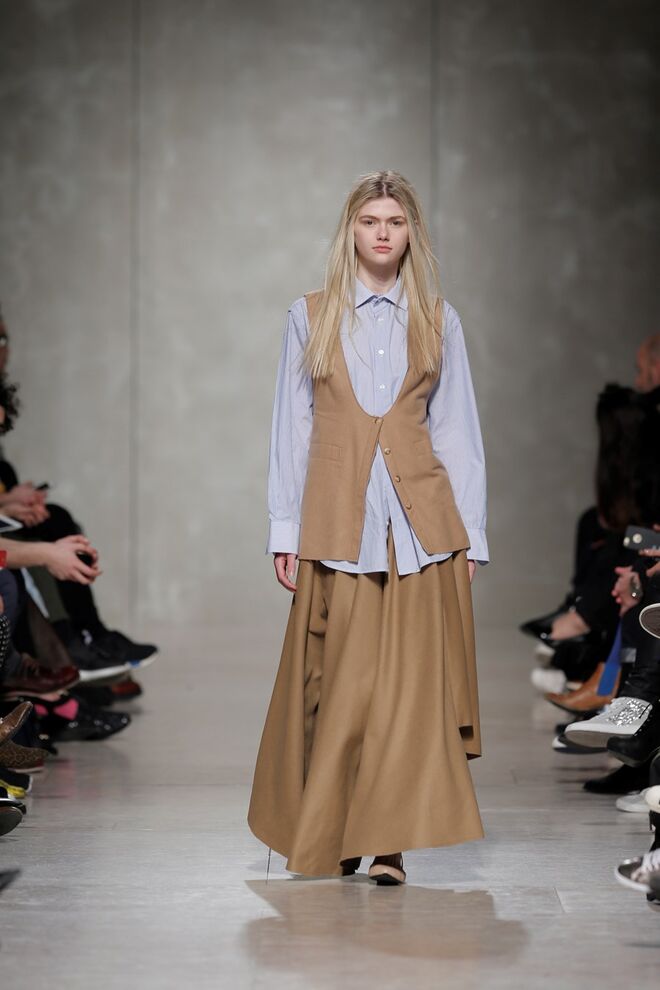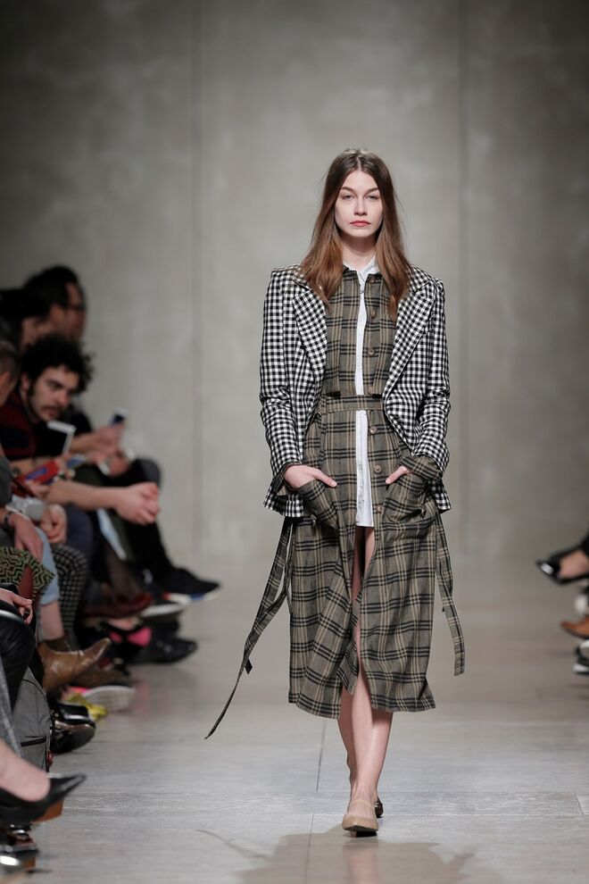 Materiais agasalho e confortáveis. Lãs, feltros, acolchoados encerados e gabardines encerados que se conjugam com algodões e linhos rudes. Tricots grossos e jerseys de lã. Vichys e axadrezados marcam os motivos da coleção.