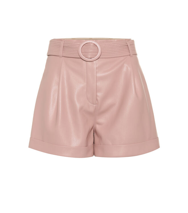 Para um dia de primavera, eu escolheria o macacão Lourdes em linho combinado com o casaco em vinil de cobra e para um dia mais quente de verão, os shorts Joyce em pele vegan cor de rosa.