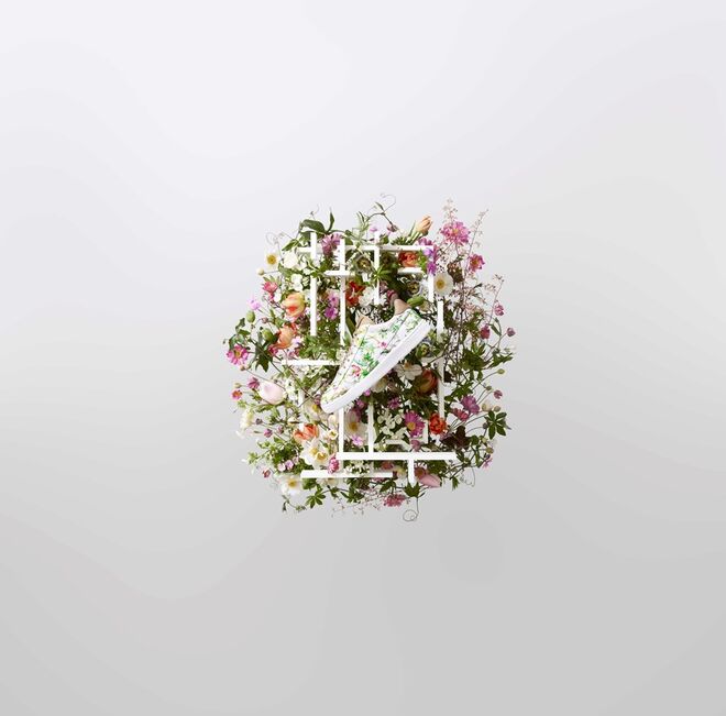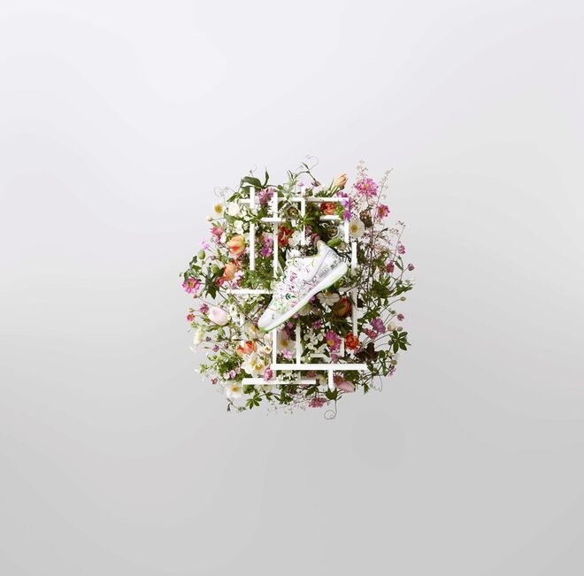 «O padrão Dawn Meadow, exclusivo da casa britânica, contém uma série de diferentes flores silvestres que usualmente se encontram em campos e jardins. A paisagem floral pintada à mão, inspirada pelos desenhos botânicos dos arquivos da Liberty London, adornam seis clássicas silhuetas Nike.