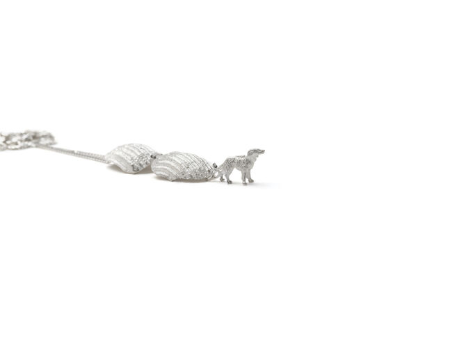 A oficina-loja no Páteo Bagatela, em Lisboa, encanta pela apresentação das joias e pelas prateleiras com recordações de viagens, frascos com folhas secas, livros de botânica e muitos postais.