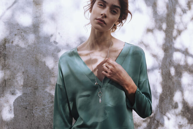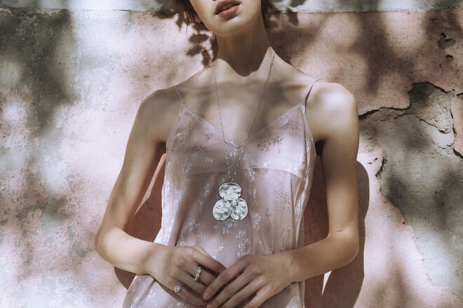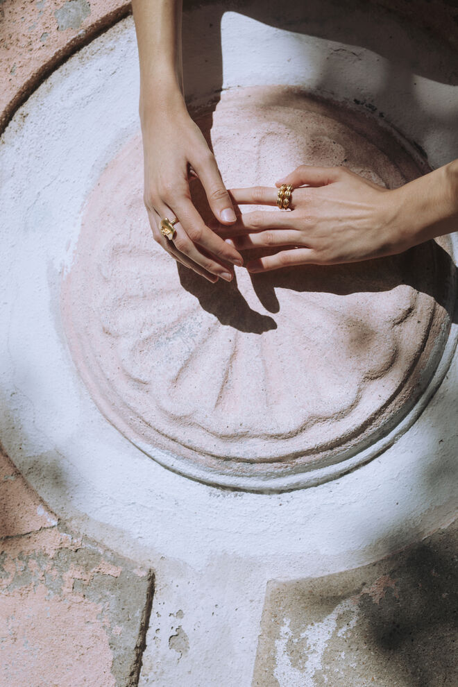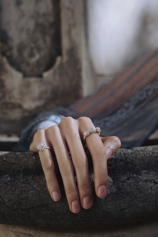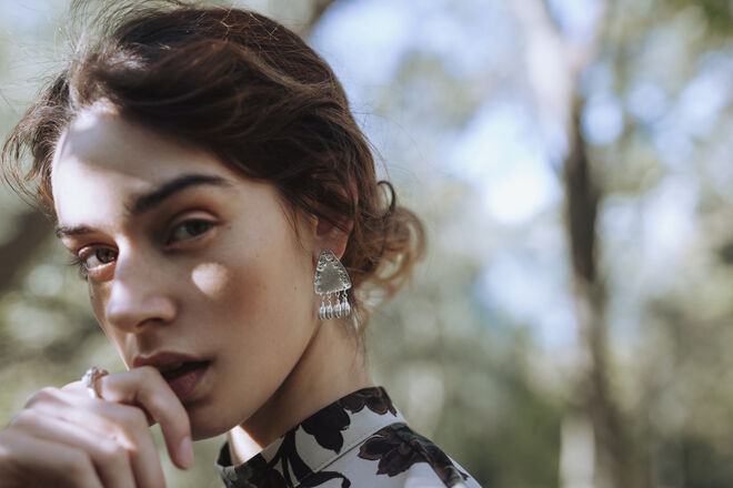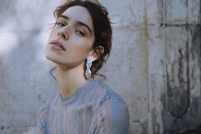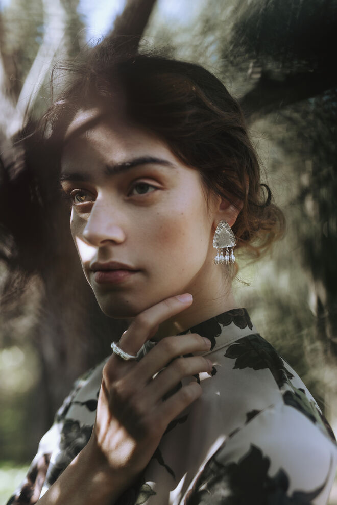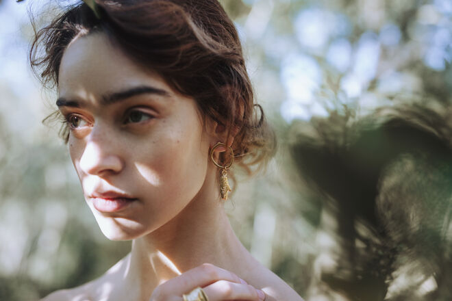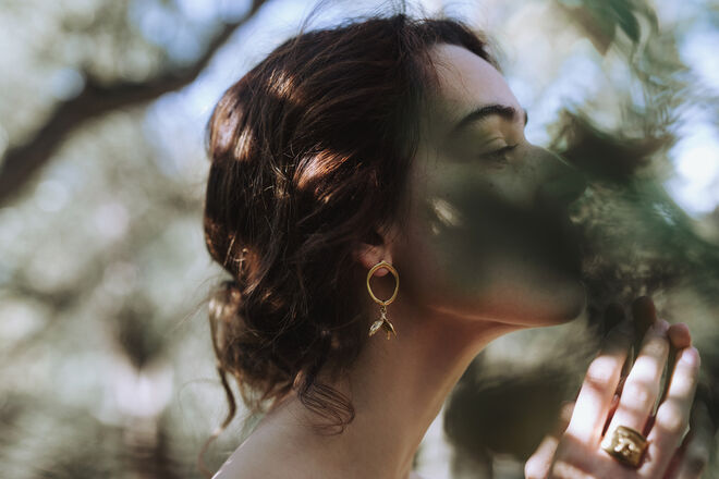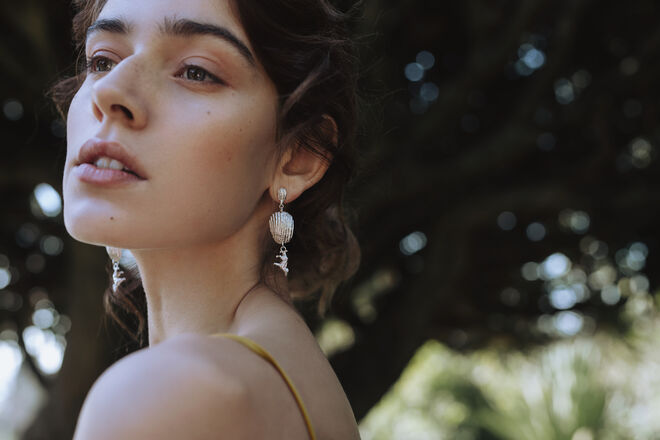 Quem entra nesta oficina-loja no Páteo Bagatela, em Lisboa, encanta-se com a apresentação das joias e também com a exposição das peças com as quais Juliana Bezerra trabalha. São prateleiras com recordações de viagens, frascos com folhas secas, livros de botânica e muitos postais. "Sabe, é esta mistura", diz a meio da nossa conversa sobre as suas inspirações, a mistura inevitável do Brasil com Portugal nas suas peças. A joalheira é brasileira e vive em Lisboa há 15 anos, mas o cruzamento de culturas não se restringe às terras lusitanas. "Fui de viagem ao Vietname e trouxe uma planta de lá, mas aquela mesma planta tem no Brasil. Pronto, está lá, mesmo sem querer surge", confessa Juliana sobre as suas raízes.