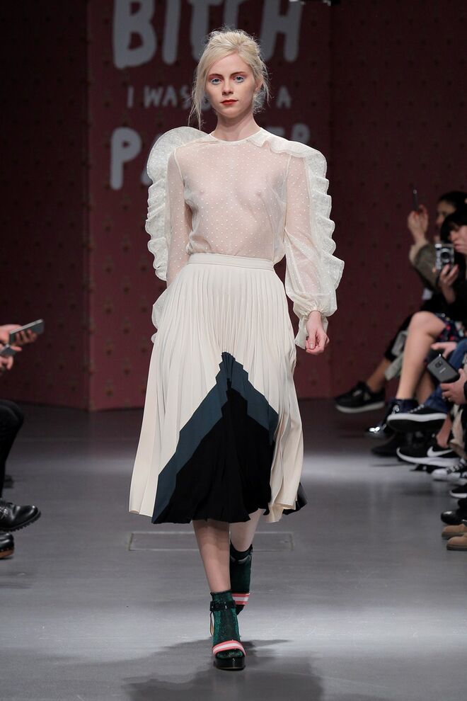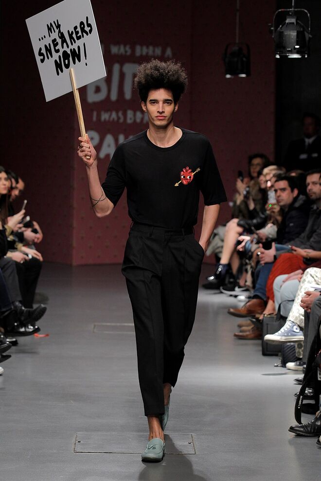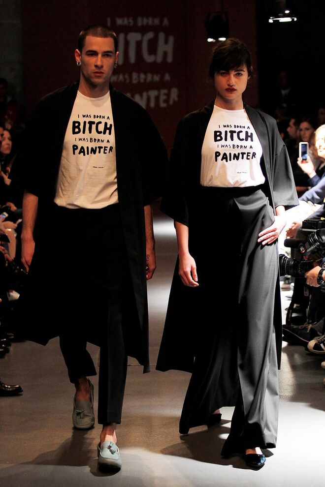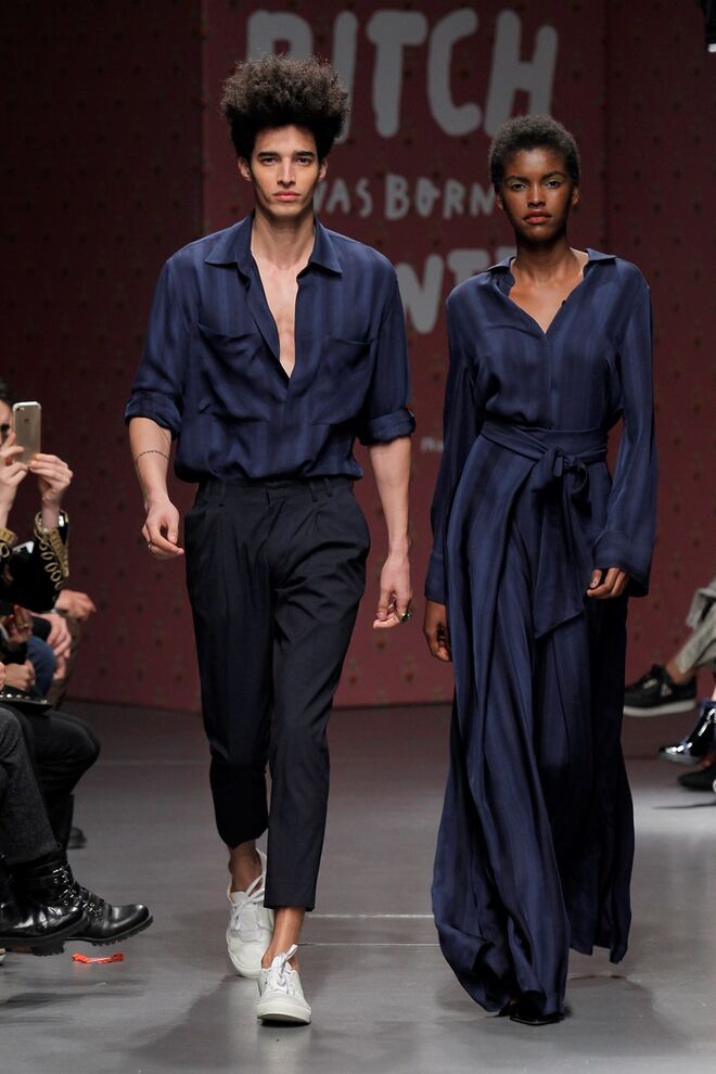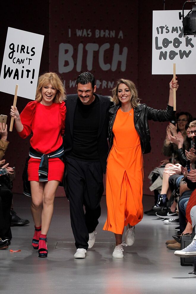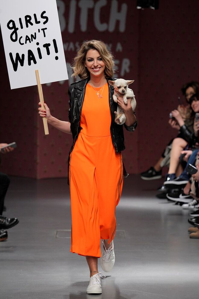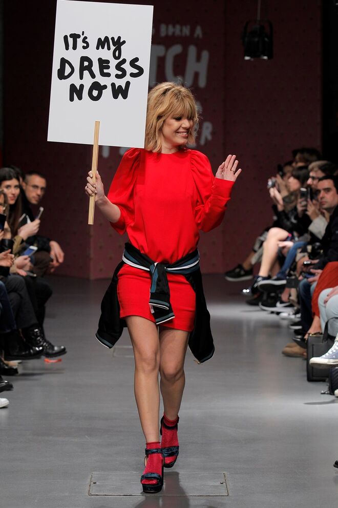 Jessica Athayde, Raquel Strada e Luís Borges foram alguns dos rostos conhecidos a desfilar para Nuno Baltazar, não sem segurarem bem no alto placas com mensagens como "it’s my dress now" ou "girls can’t wait".