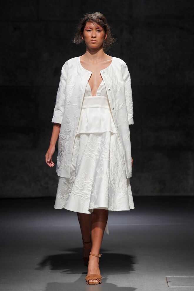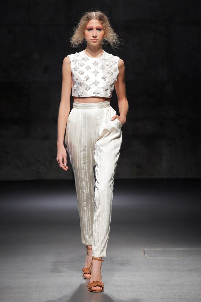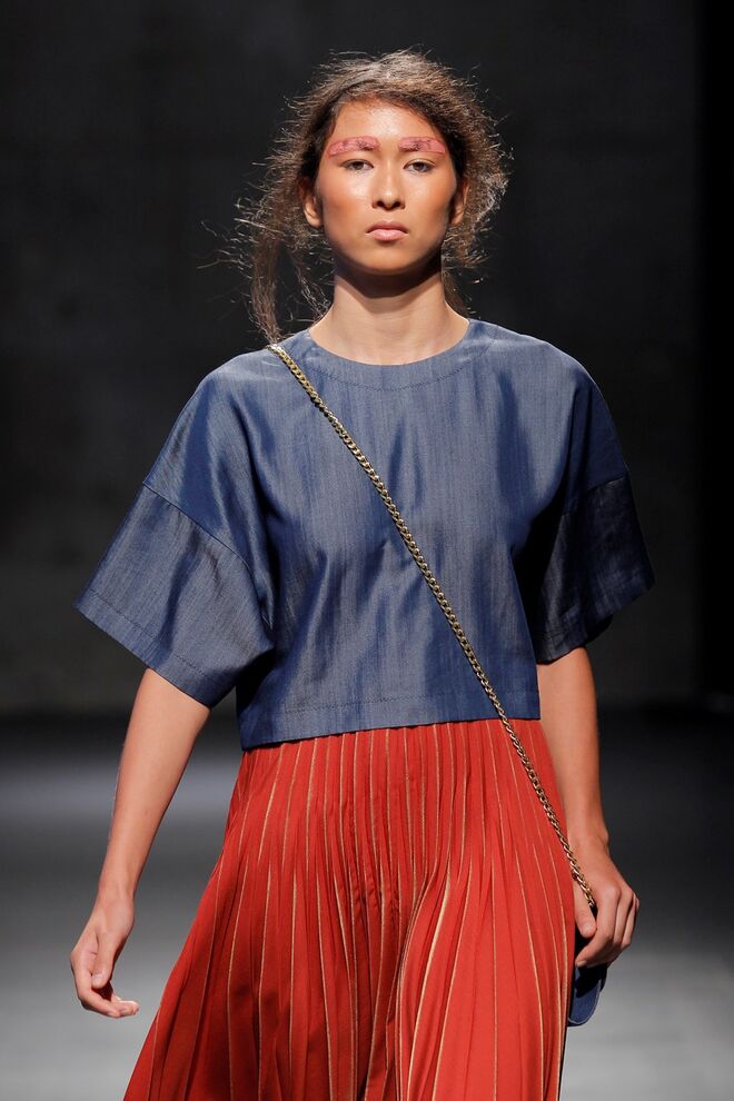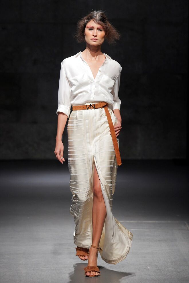 Jacquard de algodão, telas viscose/cupro, crepes e seda natural coexistem com elementos fantasiosos tridimensionais, plissados e acabamentos foil. Sandálias, malas e cintos em peles naturais para propostas sofisticadas com apontamentos metálicos, fitas sfifa e borlas de viscose reafirmam o look étnico.