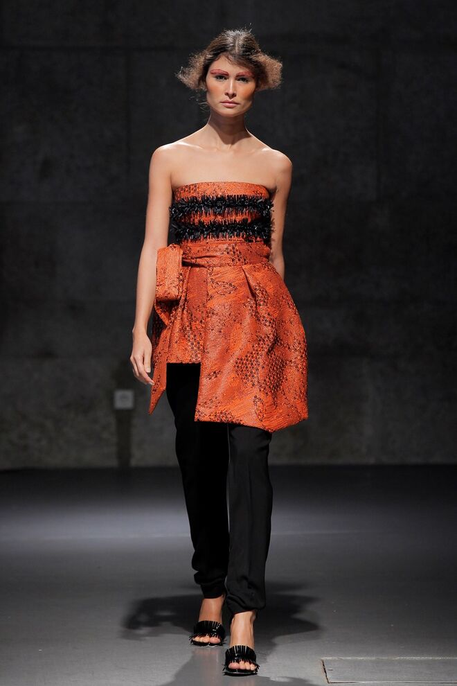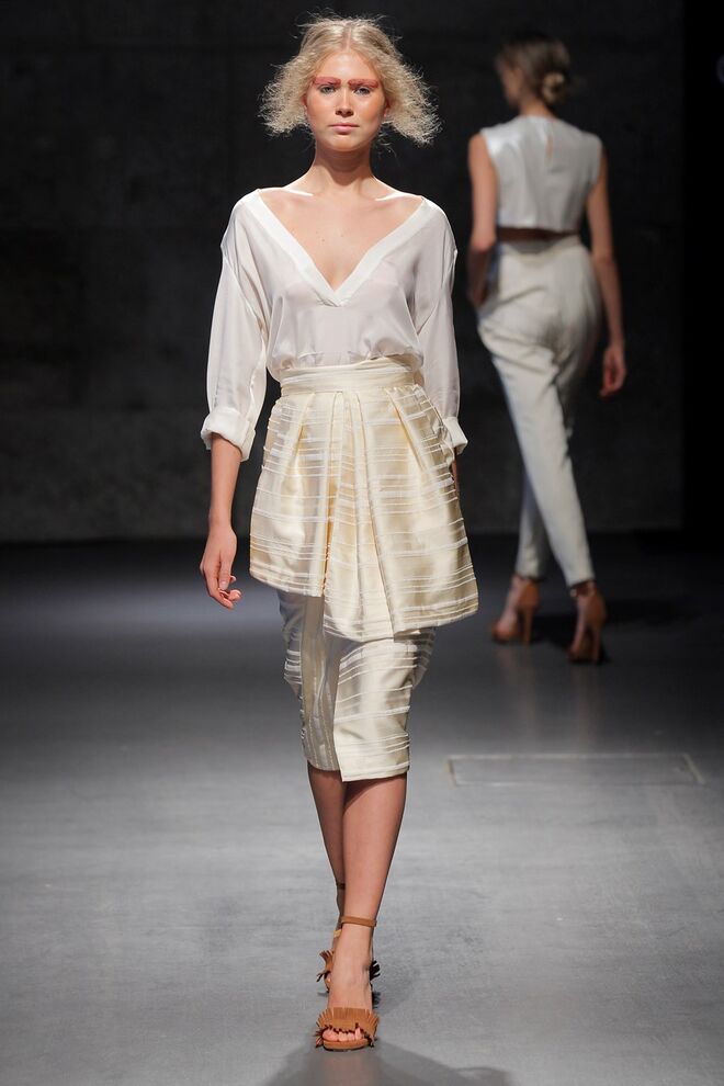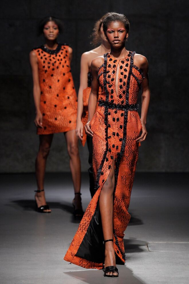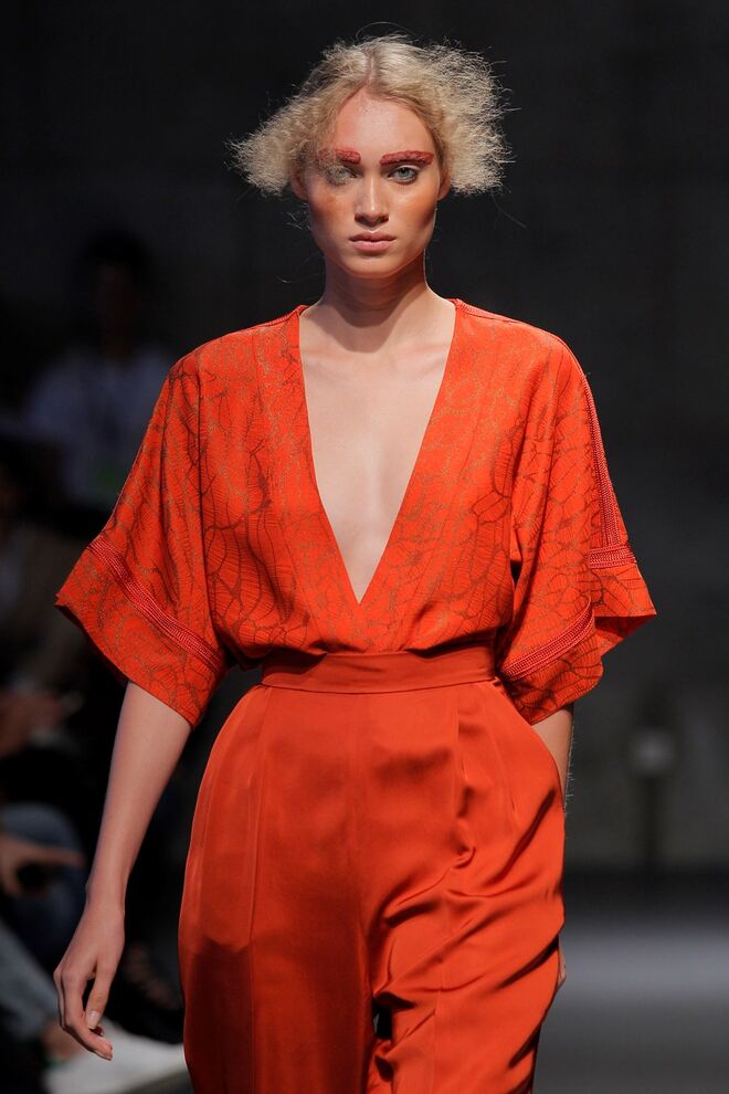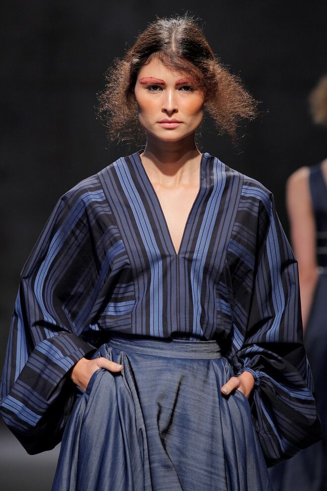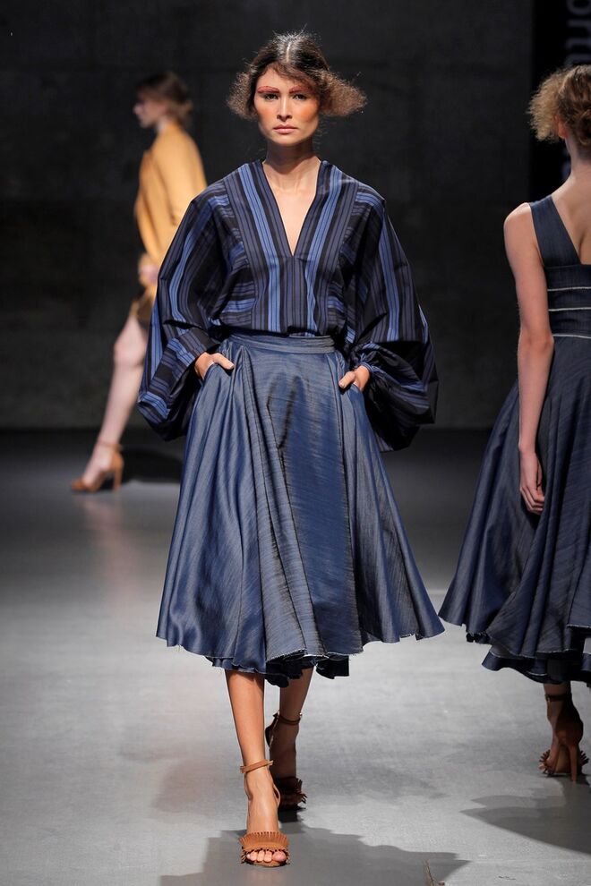 Silhuetas x e h ganham tridimensionalidade pelas texturas e grande perfusão de elementos étnicos. Estruturas anatómicas, decotes em v quebrados, saias soleil, detalhes nas linhas de tórax e cintura acentuam uma figura feminina forte.
