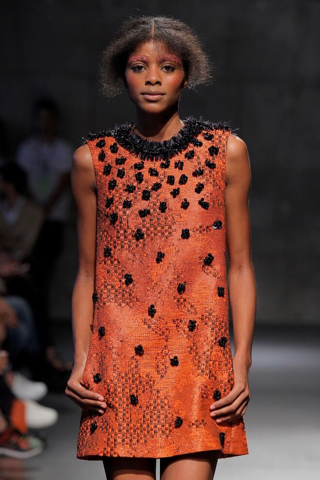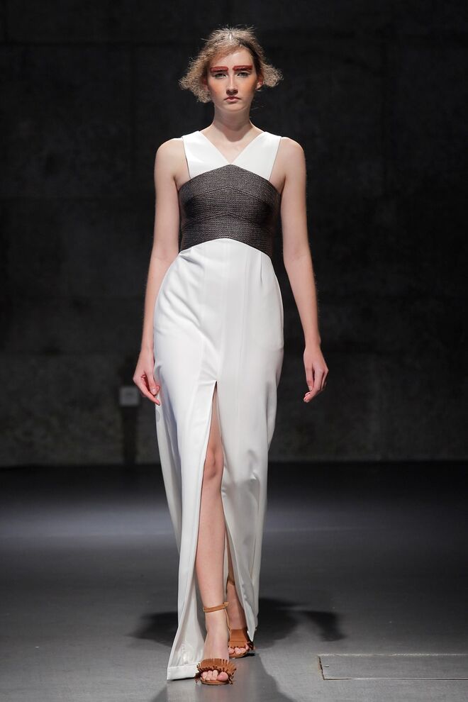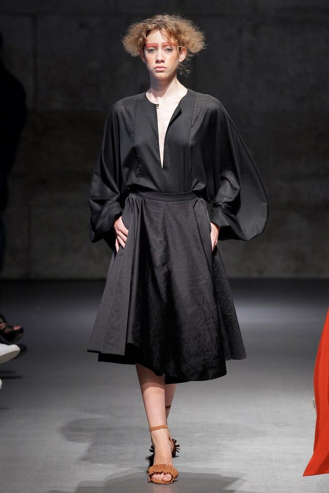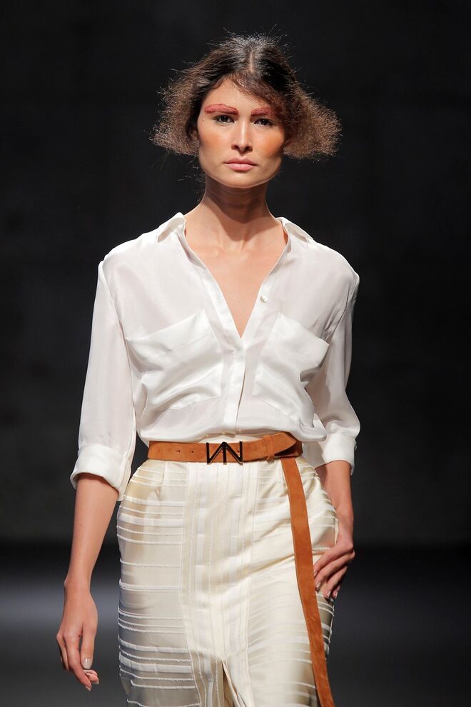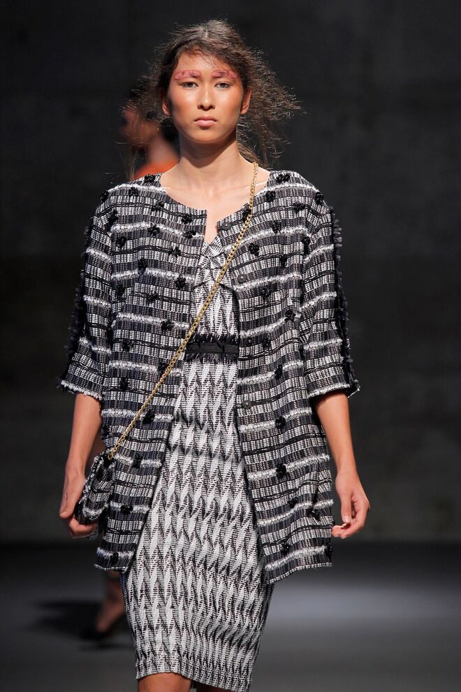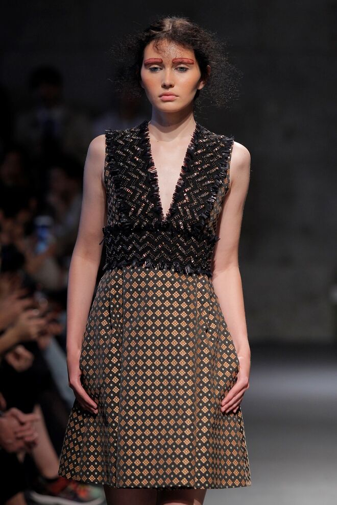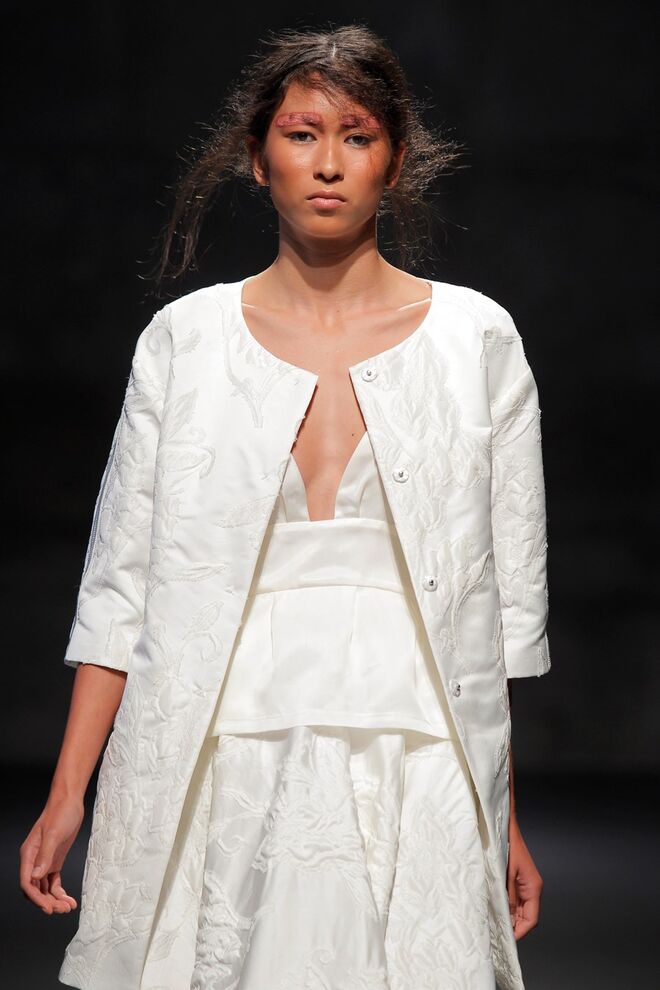 Silhuetas x e h ganham tridimensionalidade pelas texturas e grande perfusão de elementos étnicos. Estruturas anatómicas, decotes em v quebrados, saias soleil, detalhes nas linhas de tórax e cintura acentuam uma figura feminina forte.