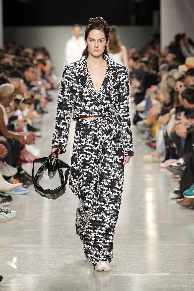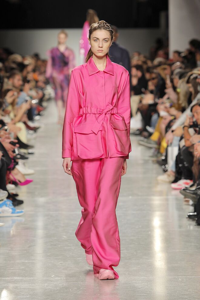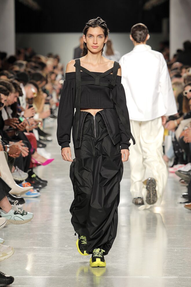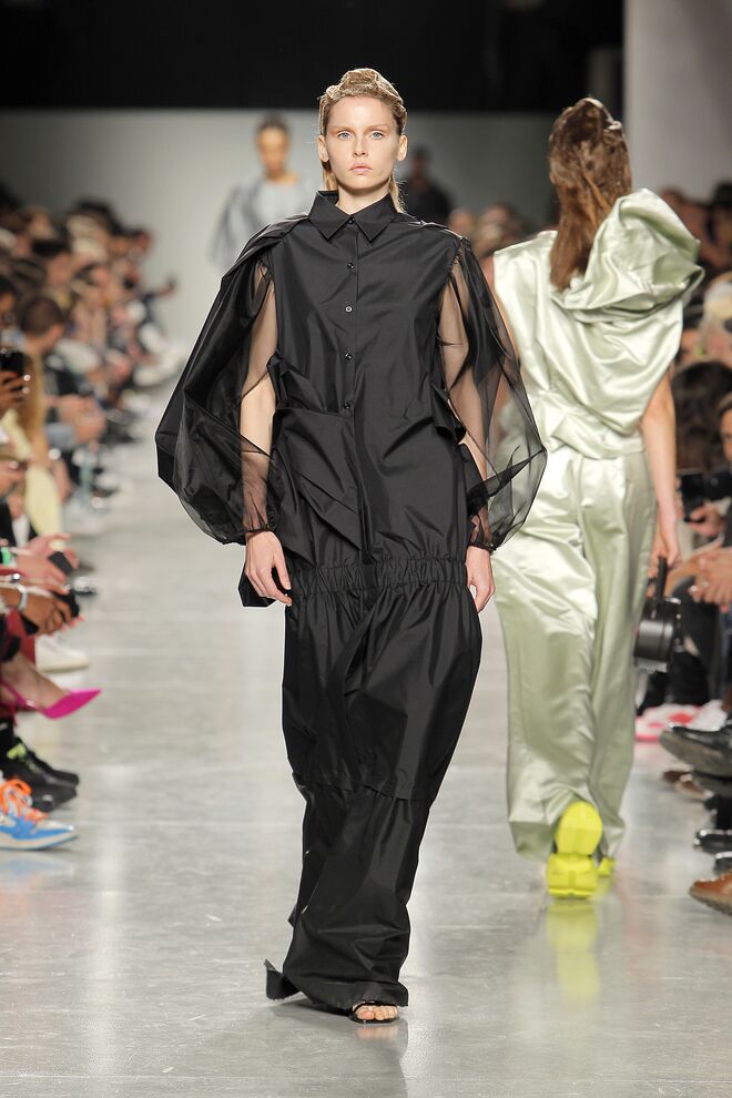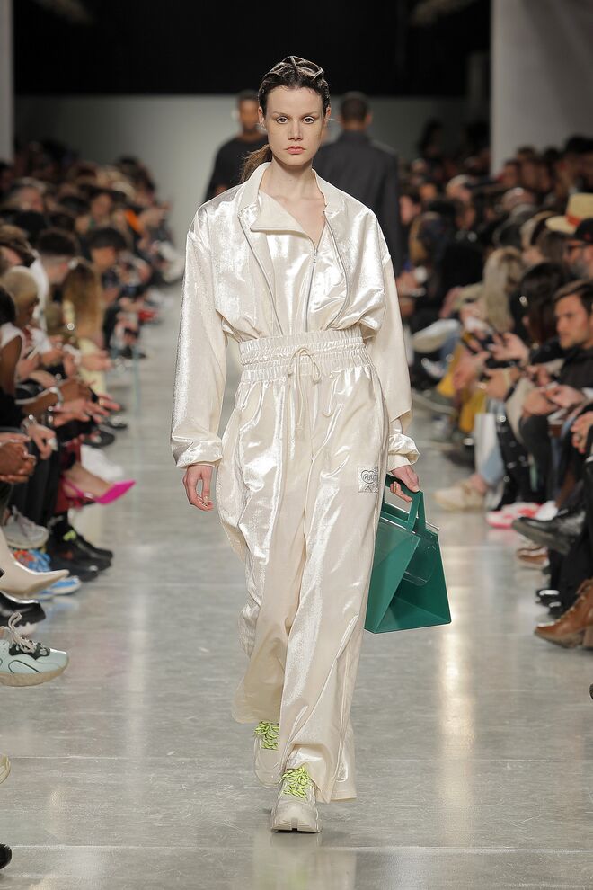 Lidija Kolovrat criou silhuetas alongadas e roupa desportiva com detalhes da alfaiataria e apresentou-as da maneira usual mas também com inlfluências do imaginário do circo.