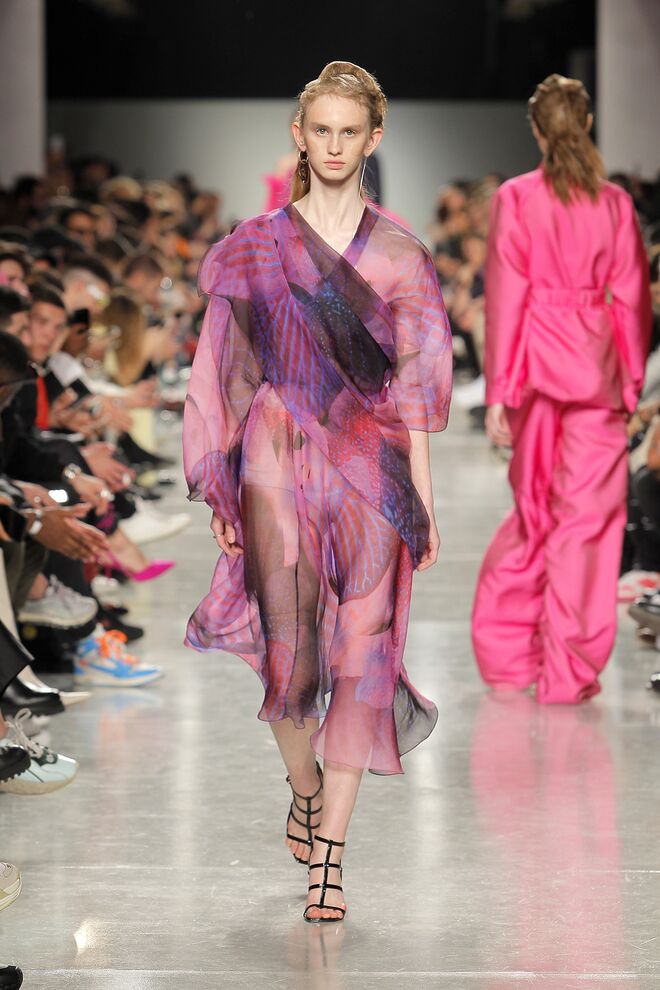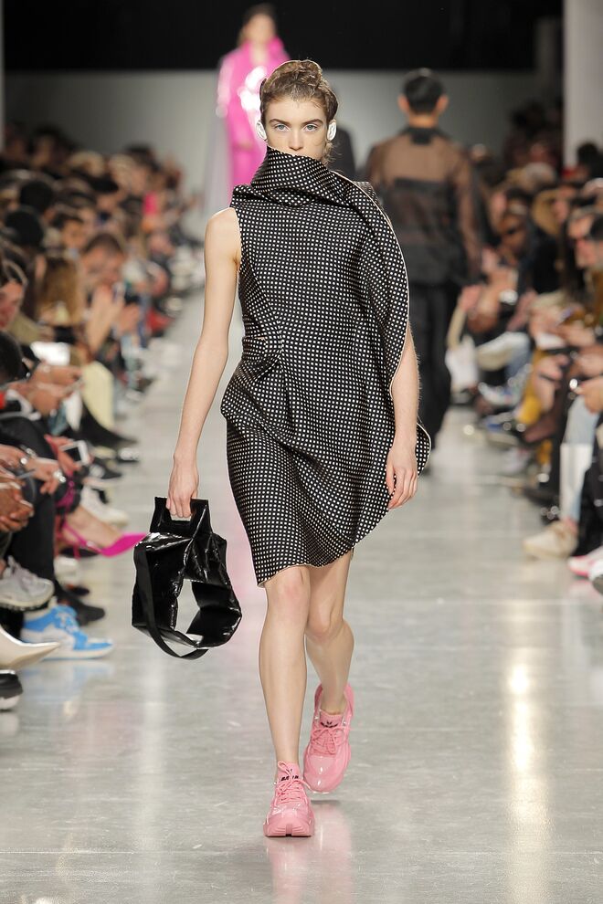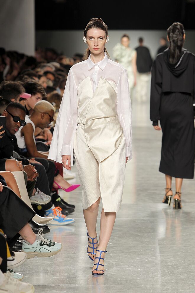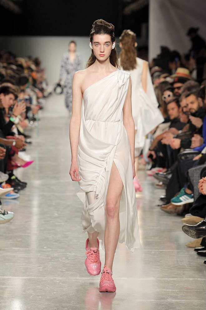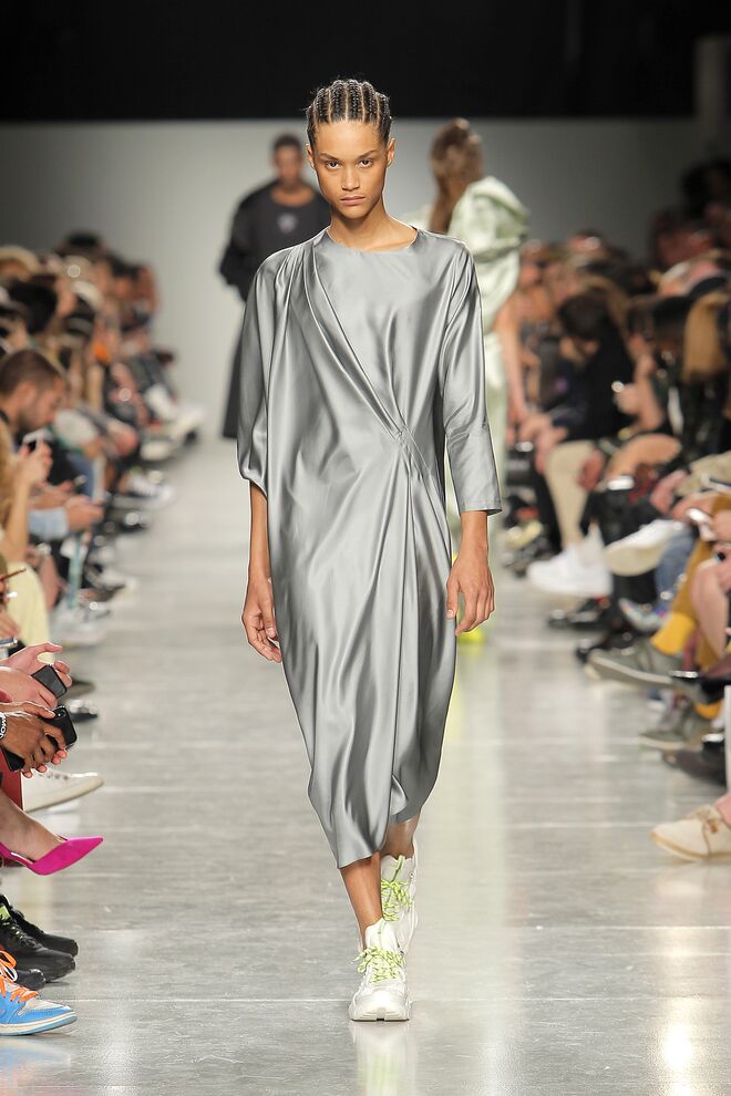 Lidija Kolovrat criou silhuetas alongadas e roupa desportiva com detalhes da alfaiataria e apresentou-as da maneira usual mas também com inlfluências do imaginário do circo.