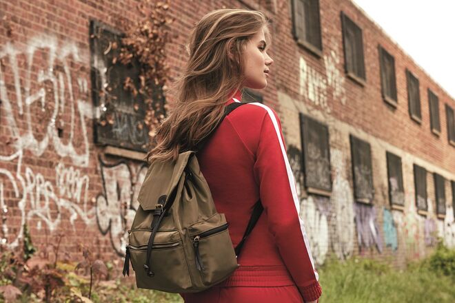 Downtown é composta pela nostalgia dos anos 90 reinventada com um toque contemporâneo, para as que definem o cool pela cidade. O varsity jacket, o vestido tubo em malha e o casaco de xadrez são as peças principais deste look. Peças mais coleantes surgem debaixo de largos boombers que reafirmam a silhueta desportiva. Os clássicos branco, vermelho e azul marinho são a paleta básica que se ilumina com toques de rosa forte. Os acessórios reafirmam a vibração cool feminina através de emblemas e pins peculiares, gargantilhas, ténis com modelos clássicos e mochilas. Fatos de treino brilhantes, blusões de penas de grande formato e sweaters com mensagens icónicas são as peças em destaque de uma imagem que respeita as origens desportivas.