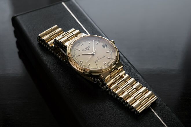 Em 1954, a Longines desenvolveu o primeiro relógio de quartzo, que estabeleceu recordes de precisão no Observatório de Neuchâtel, e assim começou a história da marca suíça com este mineral. Em 1969, surgiu o primeiro relógio de pulso com movimento quartzo, o Ultra-Quartz, e em 1984, foi criado o primeiro Conquest V.H.P., que estabeleceu o recorde de precisão da altura.