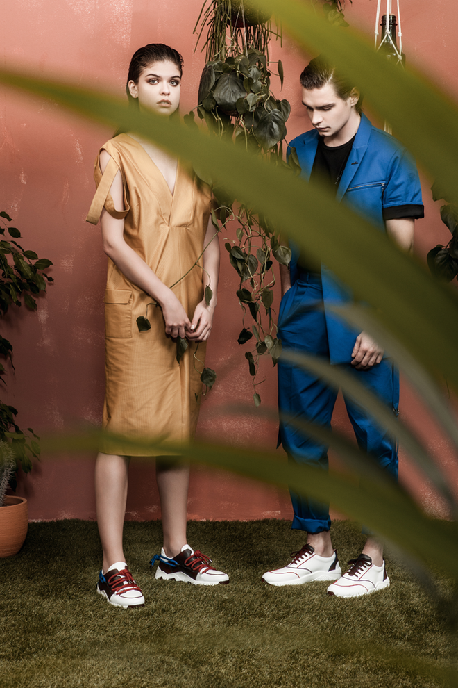 Para além desta inspiração, o estilo western urbano também é uma constante e reflete-se nas fivelas trabalhadas, solas originais, aplicações com cordas e peças metálicas, redes e perfurados. As peças estrela são os sneakers e as sandálias, preenchidos com um arco-íris de tons fortes e veranis.