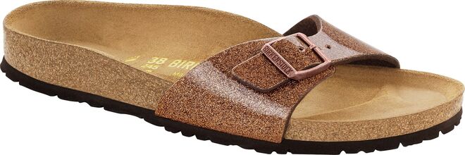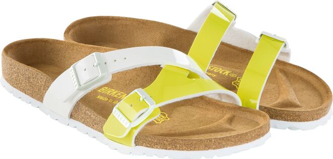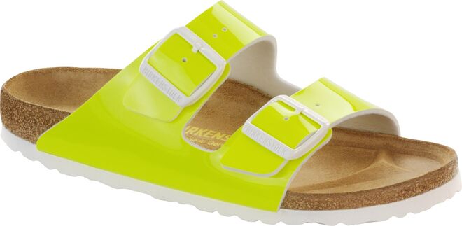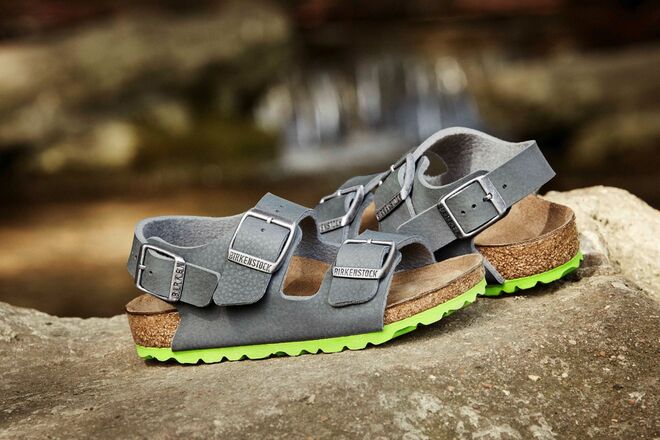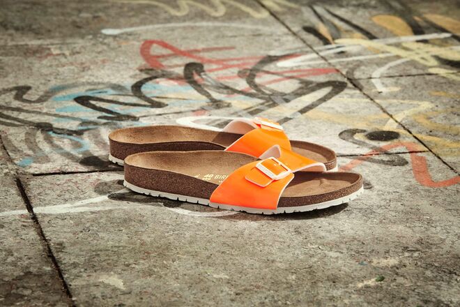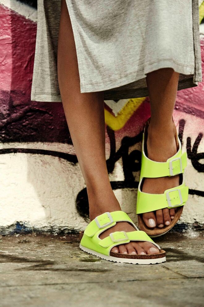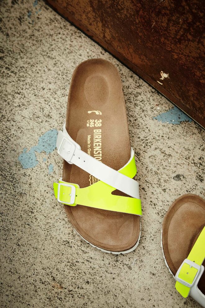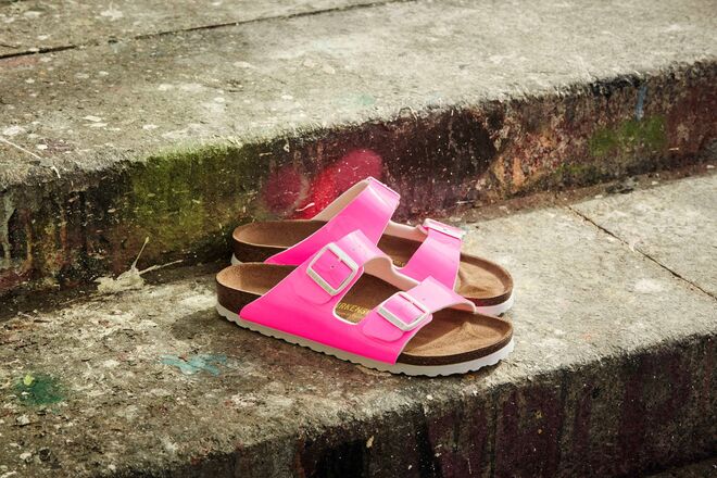 Para além dos clássicos, destacamos a linha em tons néon, uma proposta luminosa que deixa uma marca ao andar, ótima para quem não gosta de passar despercebida. As cores tendência são o verde-veneno, laranja, amarelo, azul e fúcsia, todas elas com um toque lúdico e fluorescente. Já a linha Magic Galaxy traz um brilho especial aos clássicos renascidos Madrid, Gizeh e Arizona, graças às gáspeas com um acabamento brilhante e gloss recheado de pontos de luz. Perfeita para uma viagem intergaláctica entre os momentos de trabalho e de lazer. Disponível em cores versáteis para usar durante todo o Verão. Também os metalizados continuam a ser uma forte tendência de moda tendo-se tornado numa opção neutra cheia de charme - na linha Metalic Collection, a BIRKENSTOCK regressa com os seus clássicos numa paleta de tons que gravita entre o dourado o prateado e o cobre em modelos que emanam atitude e sofisticação.