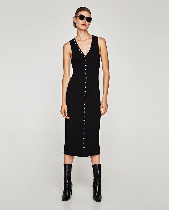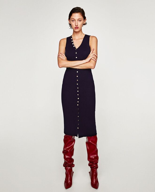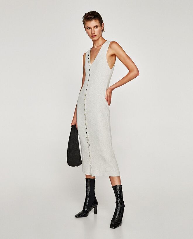 A melhor parte é que não é um vestido caro. O modelo está disponível na Zara, em tons de cinzento, azul e preto, por apenas €25,95.