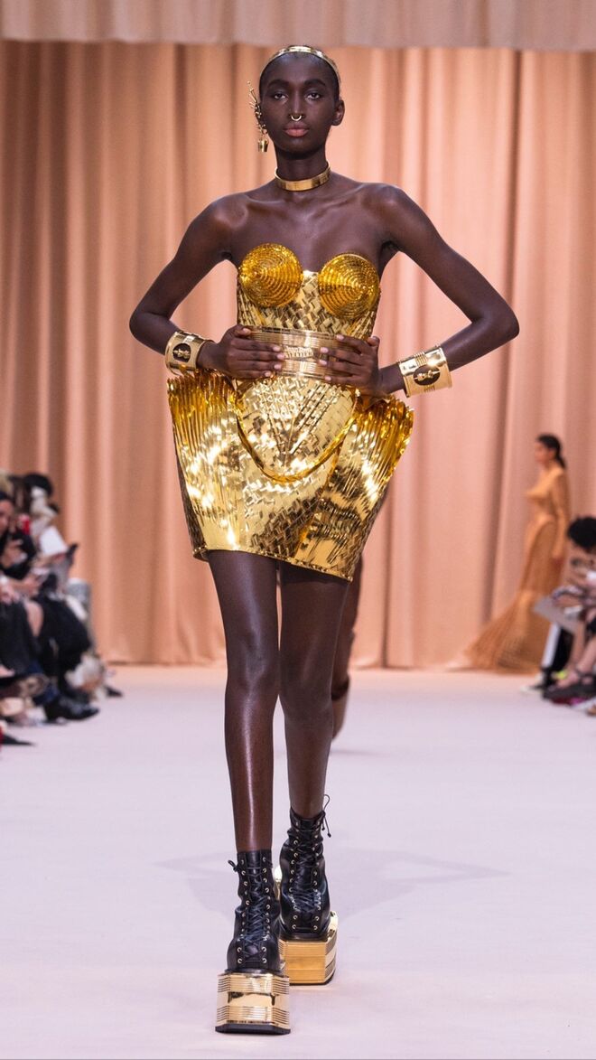 Com mais de 200 sketches, a coleção é uma dança entre o passado e o presente, uma fusão da herança de Gaultier com a criatividade de Olivier Rousteing.