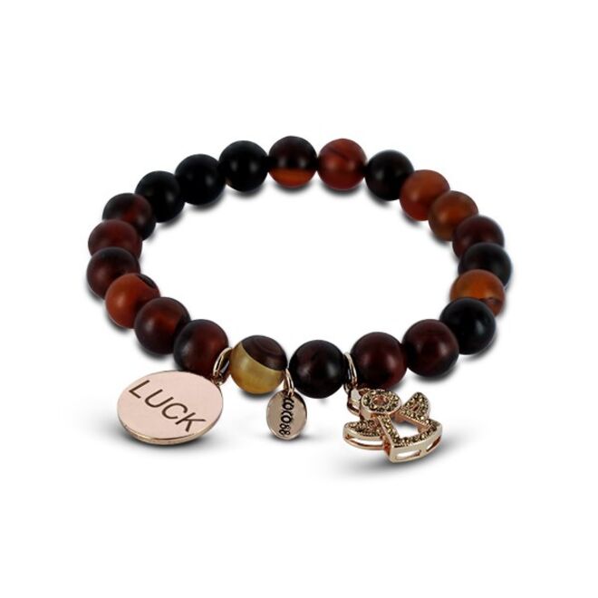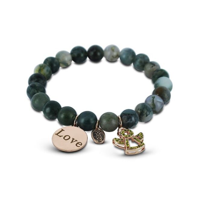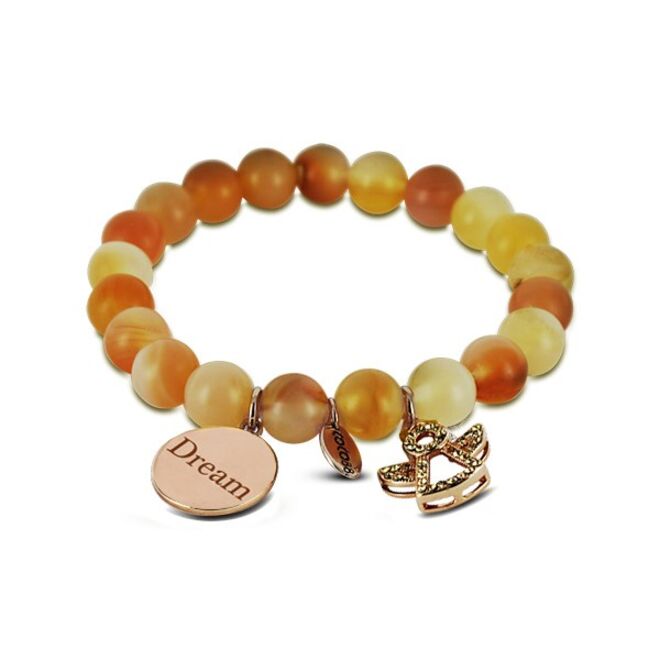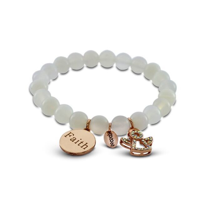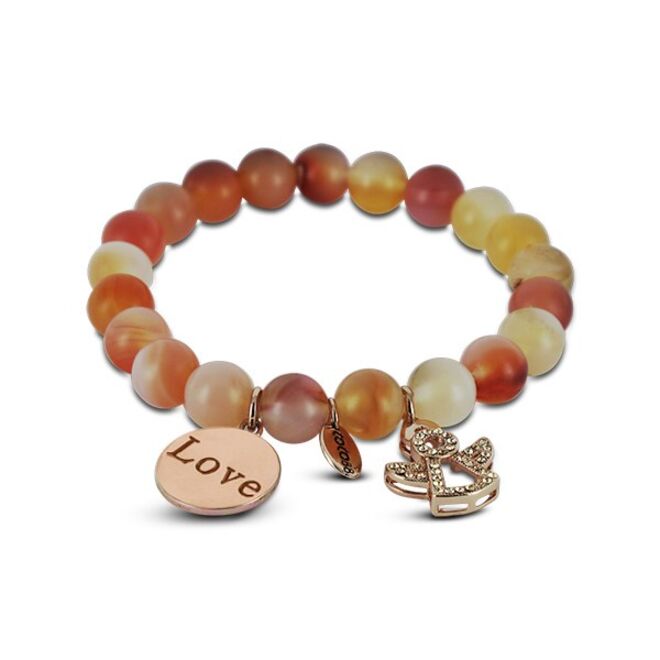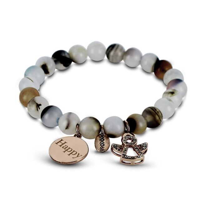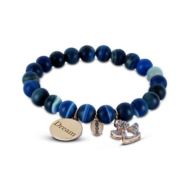 São pulseiras, relógios, brincos e colares em aço, que combinam diversos elementos e materiais, como pedras naturais e cristais swarovski.