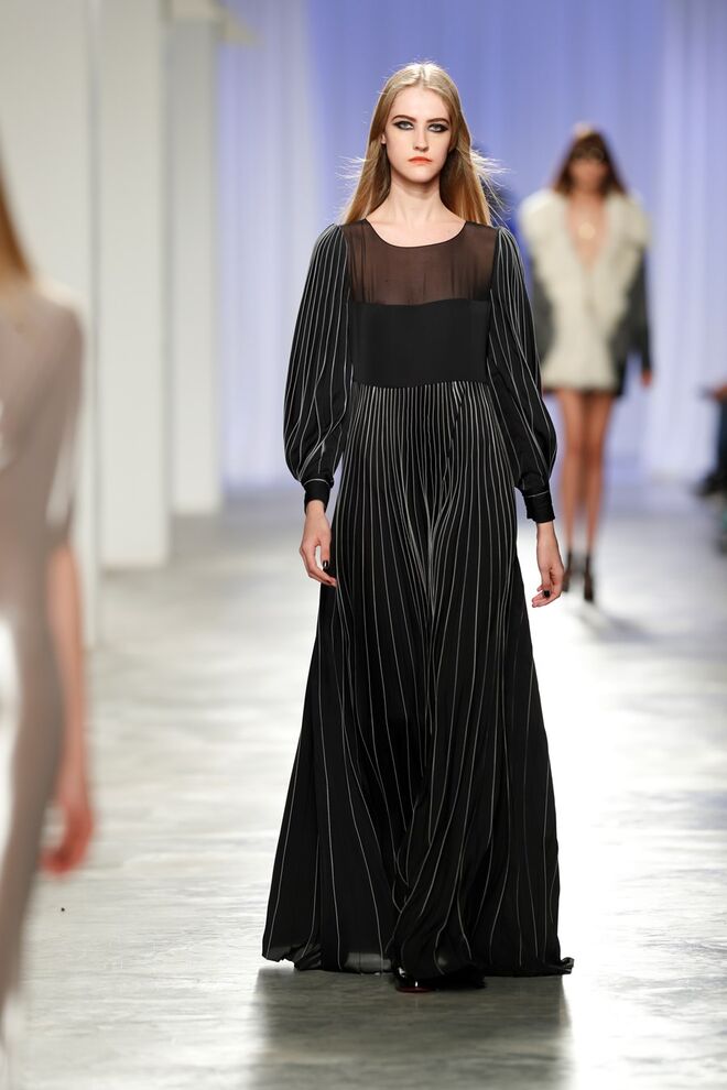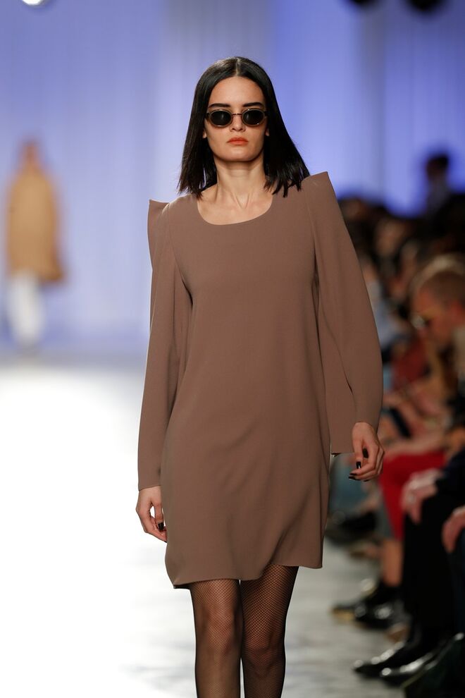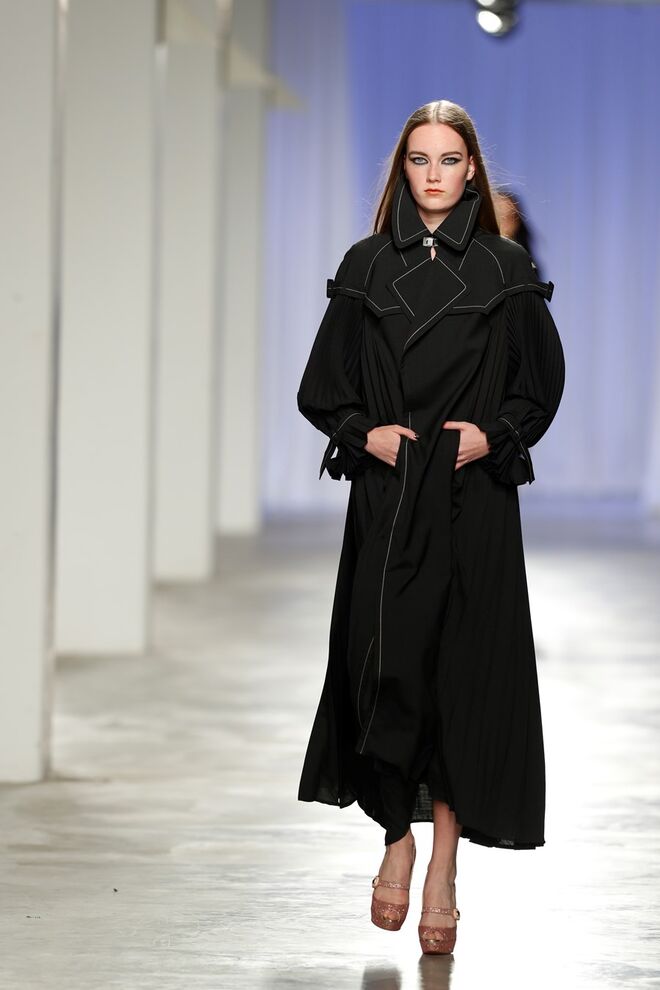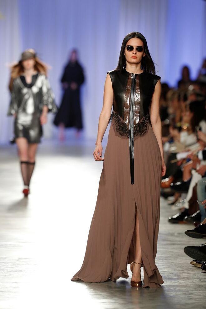 A coleção outono inverno 2017/18 de Filipe Faísca trouxe à memória os míticos anos 80. Dos grandes casacos, às palas, passando pelos plissados e os brilhos nalguns dos vestidos.