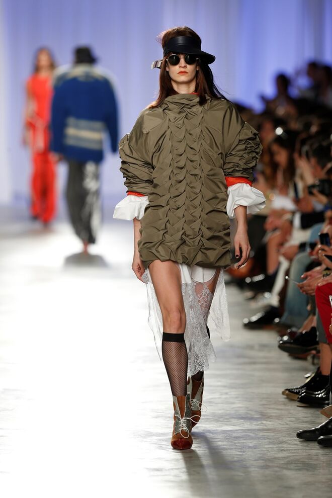 "E se na mesma pele pudéssemos ser a terça-feira e o sábado? E se fosse possível passar do salto alto a bodyguard sem sair do lugar? Aquela que faz parte da paisagem da cidade, e que mesmo vestida de cinza irradia luz", é assim que o criador define esta sua coleção.