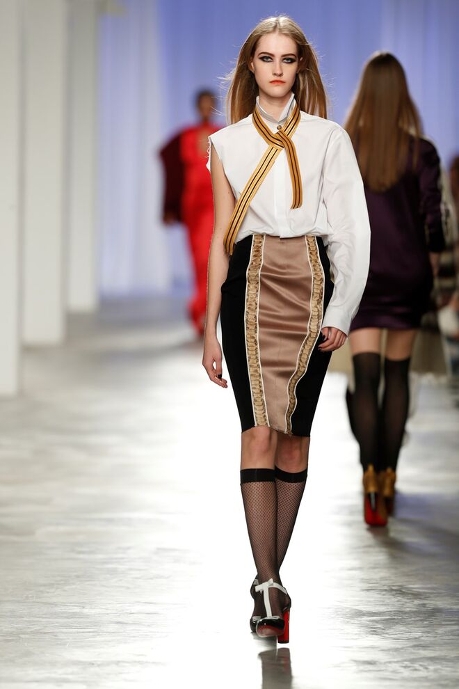 Da coleção constam também saias de várias alturas, algumas em lápis até ao joelho, realçando a silhueta feminina, outras largas até ao tornozelo. Os vestidos na sua maioria em tons de cinzento, rosa velho e preto.