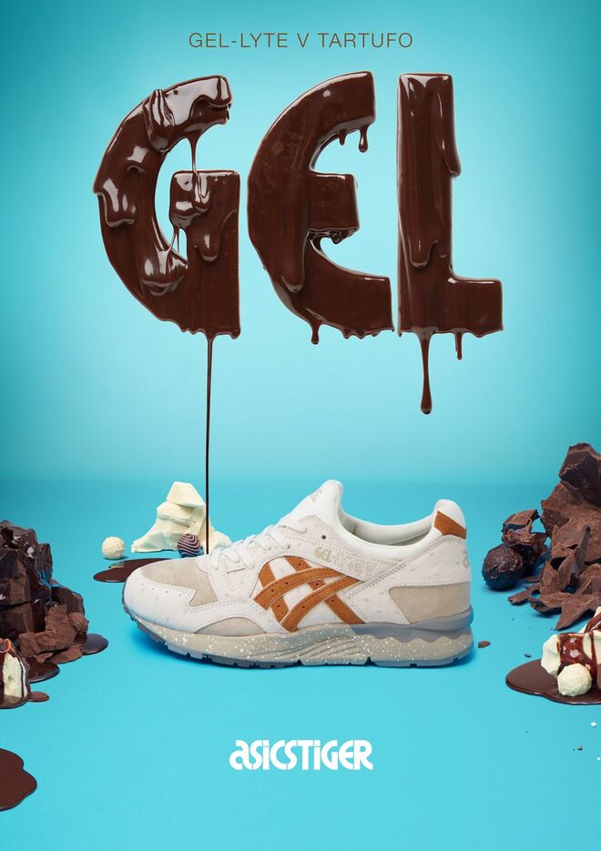 Fungo comestível ou trufa branca. Embora o conceito original dos dois novos modelos GEL-Lyte V ™ se inspire na primeira destas duas definições, o resultado foi tão doce que a marca aproveitou e serviu de sobremesa. Os dois modelos combinam a camurça com o couro com textura de avestruz, a primeira combinação mistura o preto e três tons de castanho com detalhes no upper, enquanto o segundo é branco puro com apontamentos em tons creme e areia. A entressola de cada par é da cor do upper respectivo, com contraste salpicado. O novo modelo Gel-Lyte V Tartufo tem um PVP recomendado de €140.