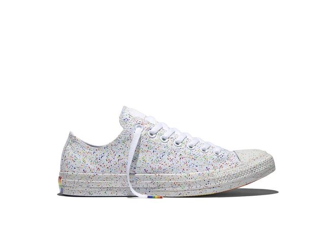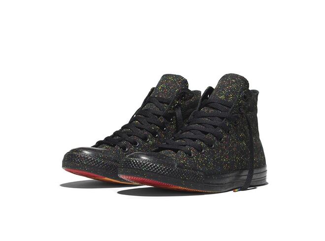 Inspirada em todas as comunidades LGBTA do mundo, a coleção serve como um lembrete apaixonado pela tolerância universal a diversidade e a igualdade – encorajando a comunidade criativa a ser cada vez mais autêntica. Lançada esta primavera nas silhuetas clássicas Converse Chuck Taylor cano alto e cano baixo, as características especiais desta coleção incluem um tecido premium num arco-íris vibrante e um logo no calcanhar e ilhós também em arco-íris. A coleção está disponível tanto em tela colorida entrelaçada como num arco-íris salpicado. A coleção representa o apoio da Converse no movimento global pride. Os ténis estão disponíveis desde €95.