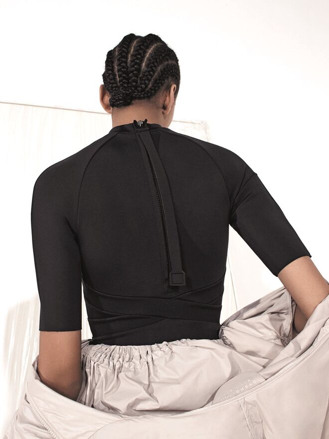 Detalhes assimétricos e cuts-out em tops e macacões criam um efeito ótico que combina com outras peças de inspiração mais minimalista observada em bodys, leggings e sweatshirts. Entre as novas propostas para a temporada SS17, destacam-se a parka e o blusão bomber com tecidos metalizados e com uma clara inspiração outdoor que se encontra no streetstyle mais urbano, os bodys técnicos de neopreno com cortes estratégicos e as leggings de cintura alta que realçam a silhueta feminina.