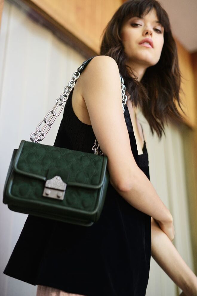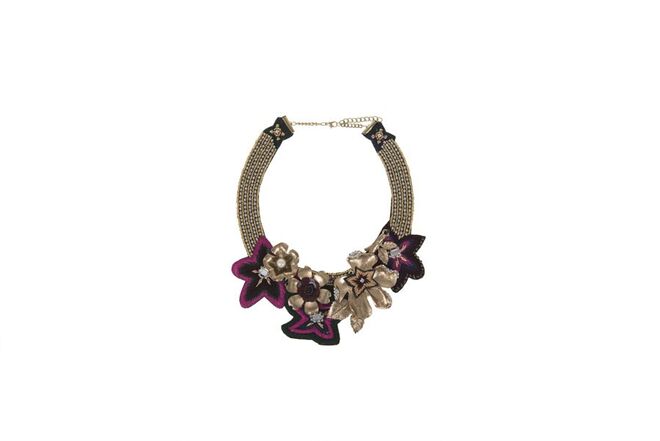 Carteiras inspiradas no guarda-roupa da aristocracia do século XVIII, com adornos vitorianos, trazem um lado clássico a esta coleção, que se completa com peças modernas e atuais, como chokers com pedras que se transformam em fitas para o cabelo ou colares statement com aplicações em tecido e pedras brilhantes.
